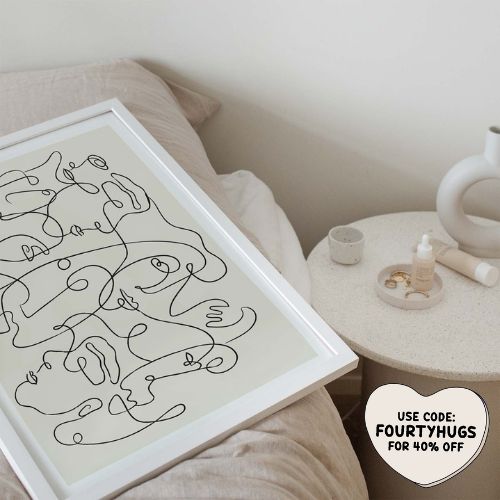 Our Unity print is defiantly a staple for those wanting to add a modern contemporary art quirk to your home. This one-of-a-kind original piece adds a simple charter to all homes. This artwork style is characterized by minimalistic, one-line drawing. Let this portrait shine be showcased in your interior.