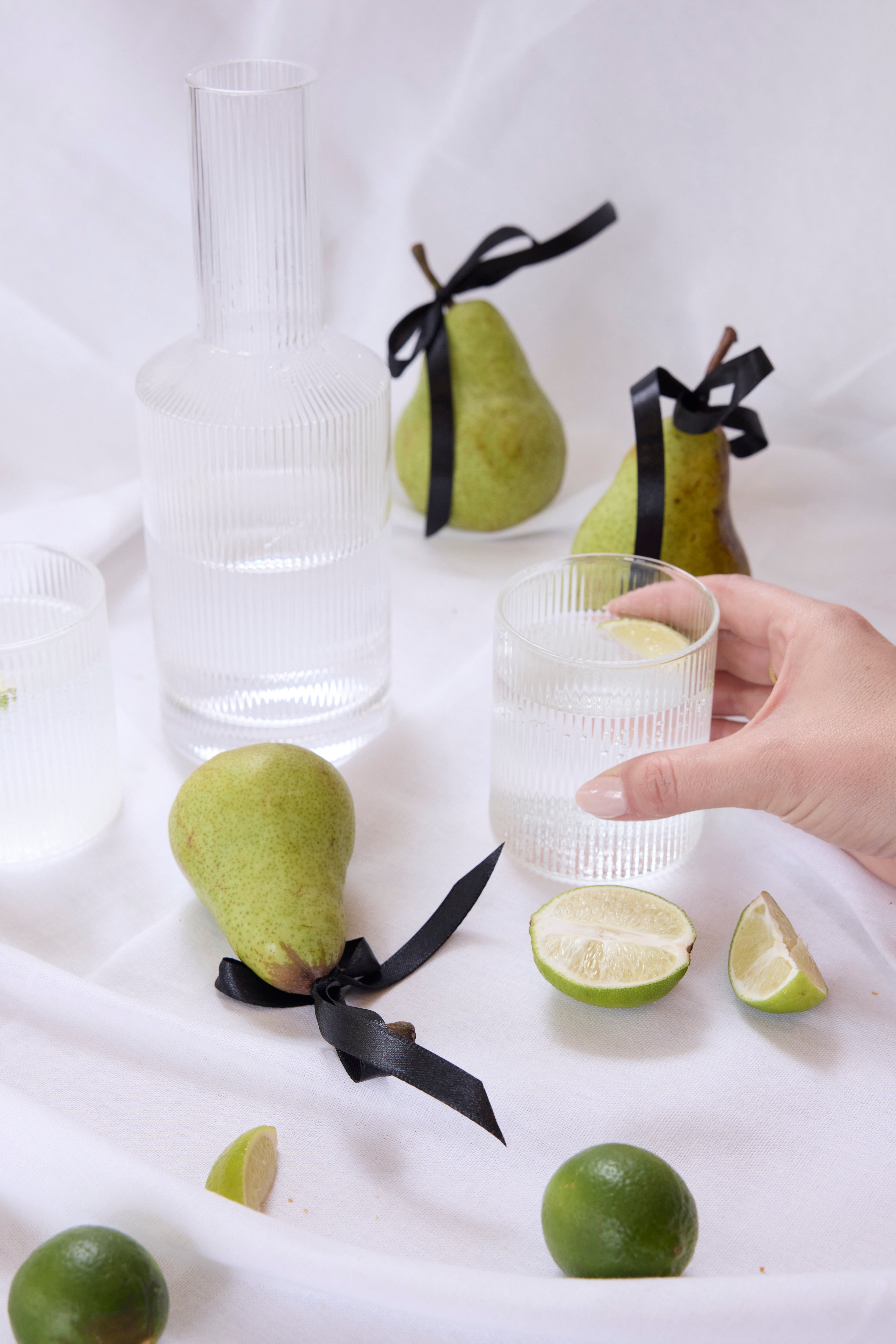 A modern tumbler with fine vertical fluting, comfortable in hand, beautifully weighted, and designed to make simple moments feel special.
