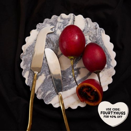 The contrast of cool metal and warm gold gives this set a refined, modern edge. Perfectly shaped for cutting, spreading, and serving a variety of cheeses, it’s both functional and beautifully statement-making.