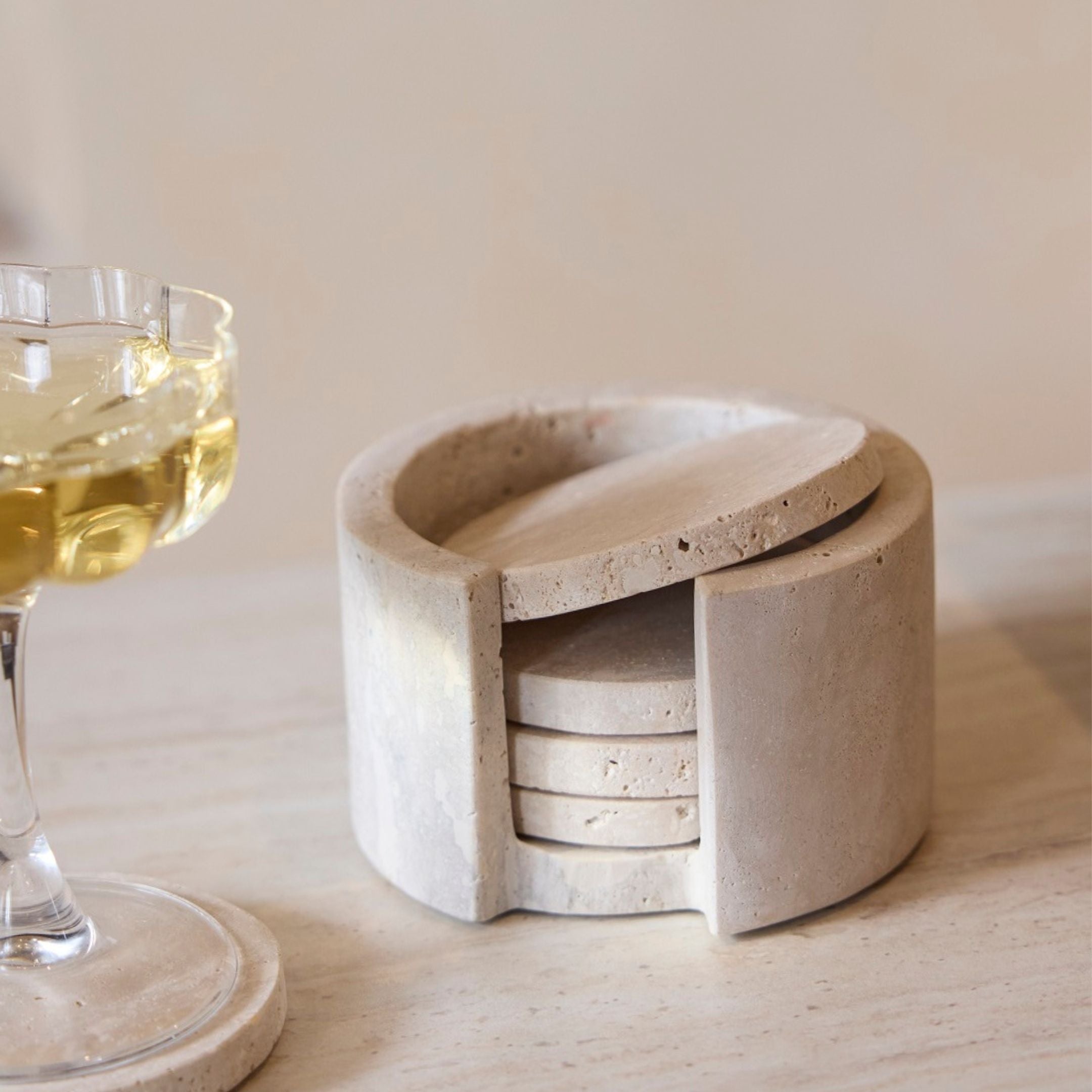 Minimal glass + natural stone = instant table glow-up. A clean duo for dinners, desk wines, and “come over” nights.