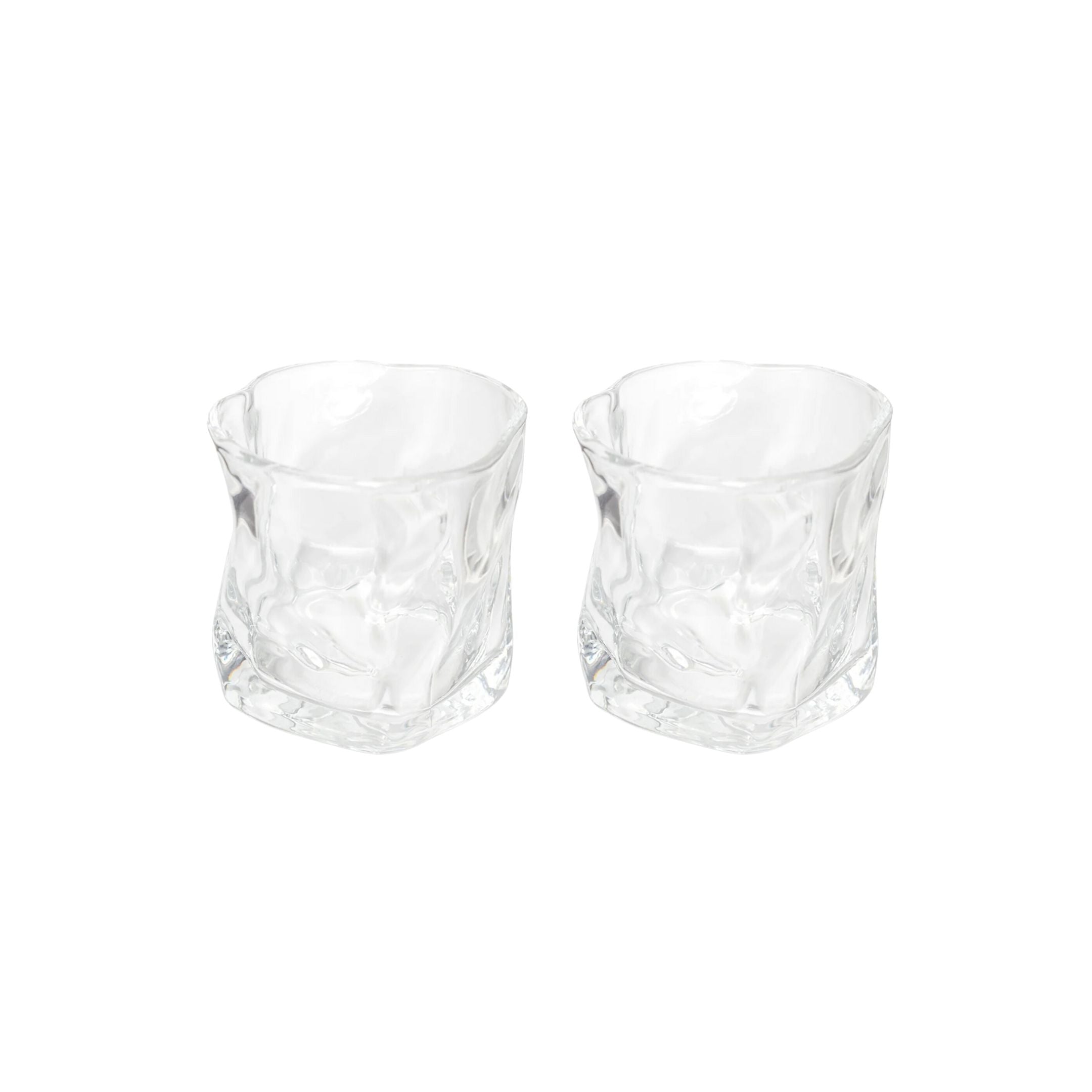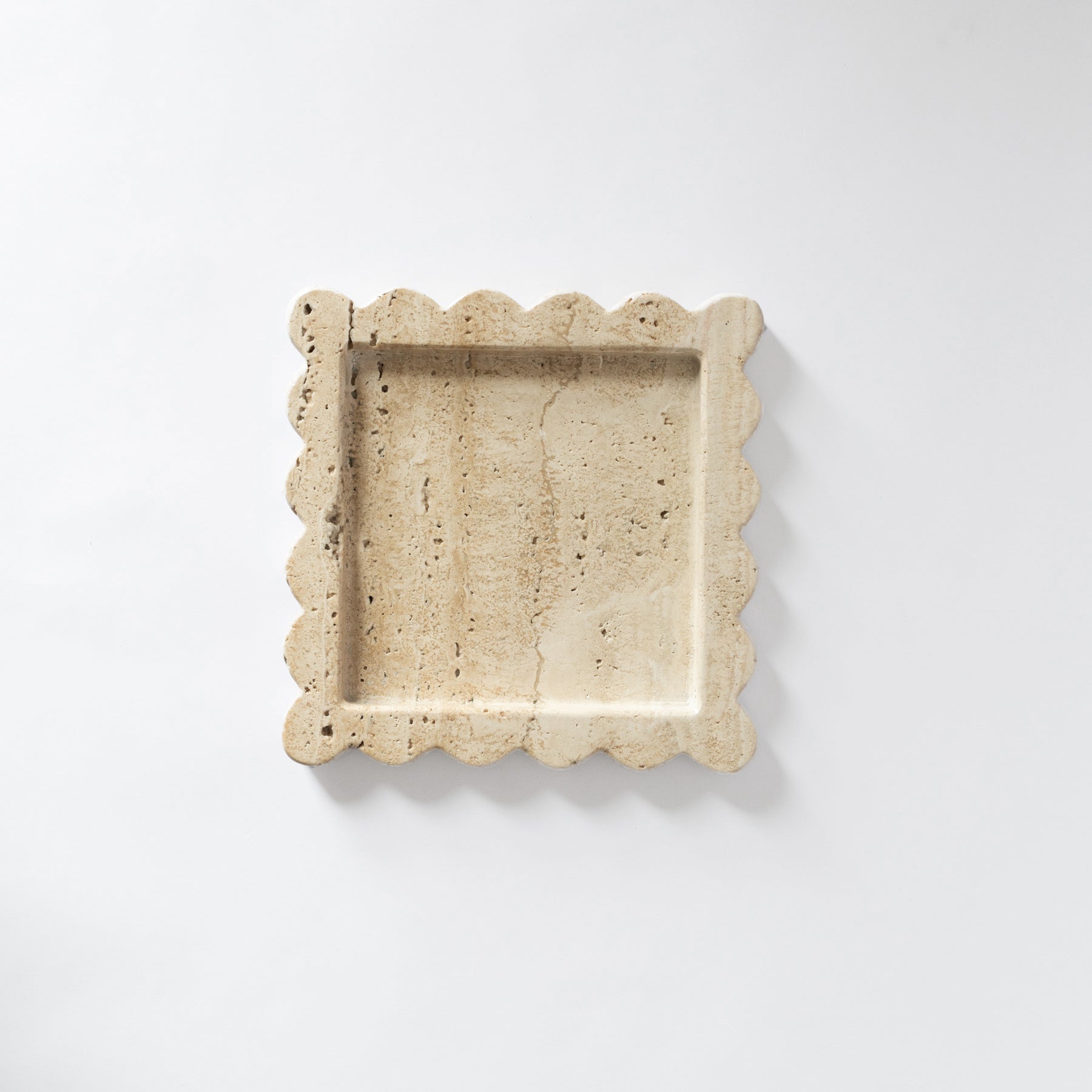 Wavy glass meets scalloped travertine—Coastal energy, minimal finish. Texture on texture for an instant tablescape glow-up.