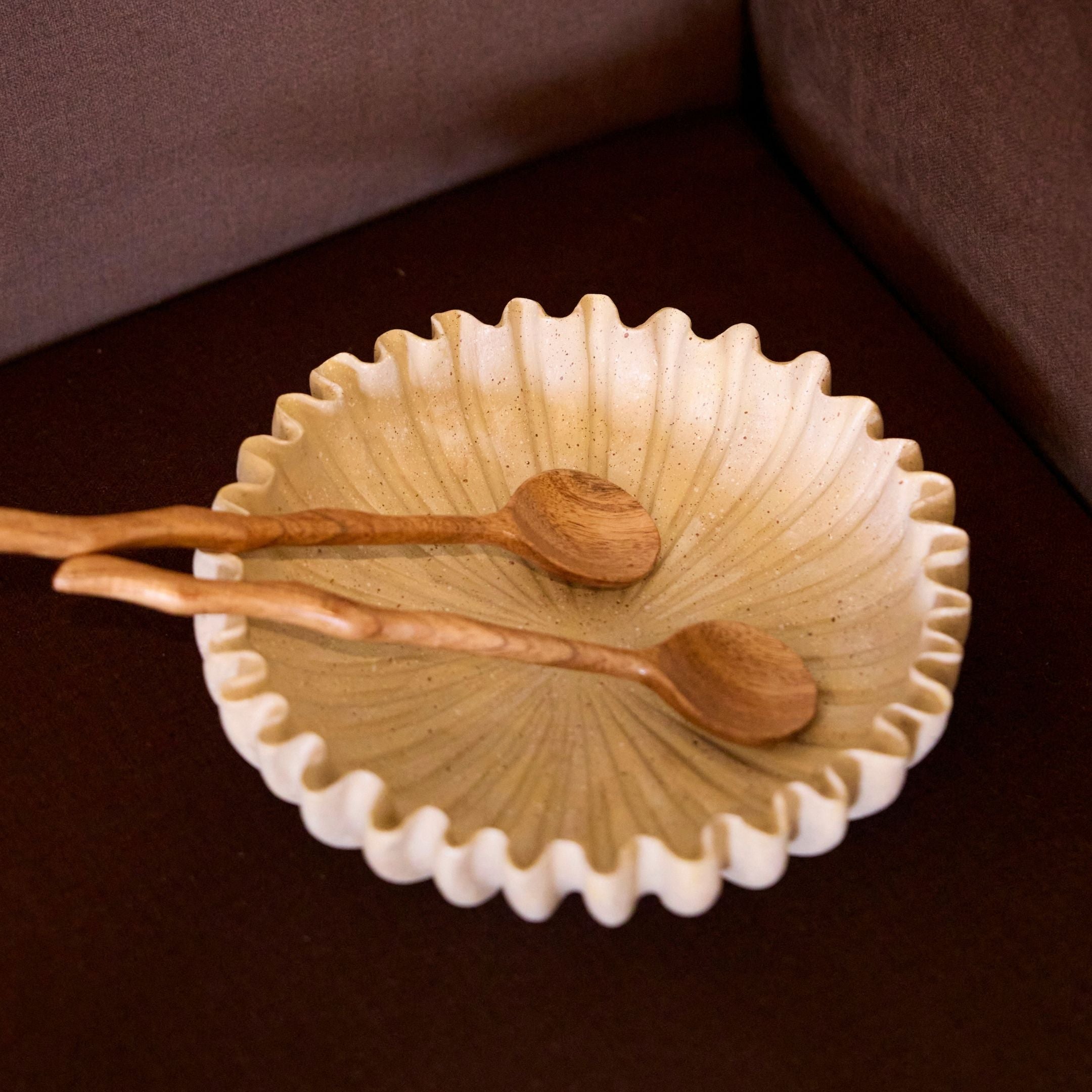 Hand-carved from natural wood, our Wavy Salad Servers bring an organic, sculptural touch to your table.