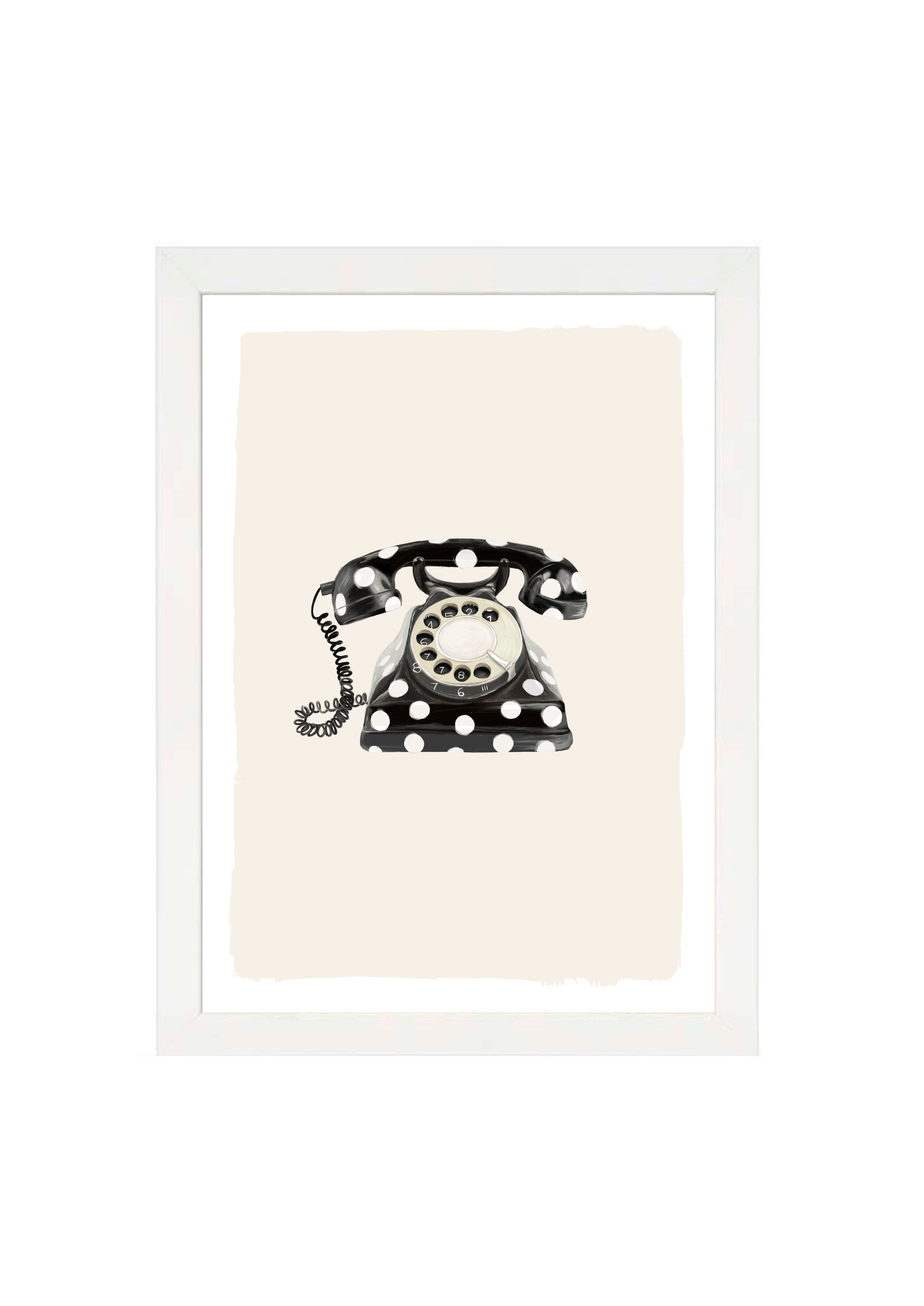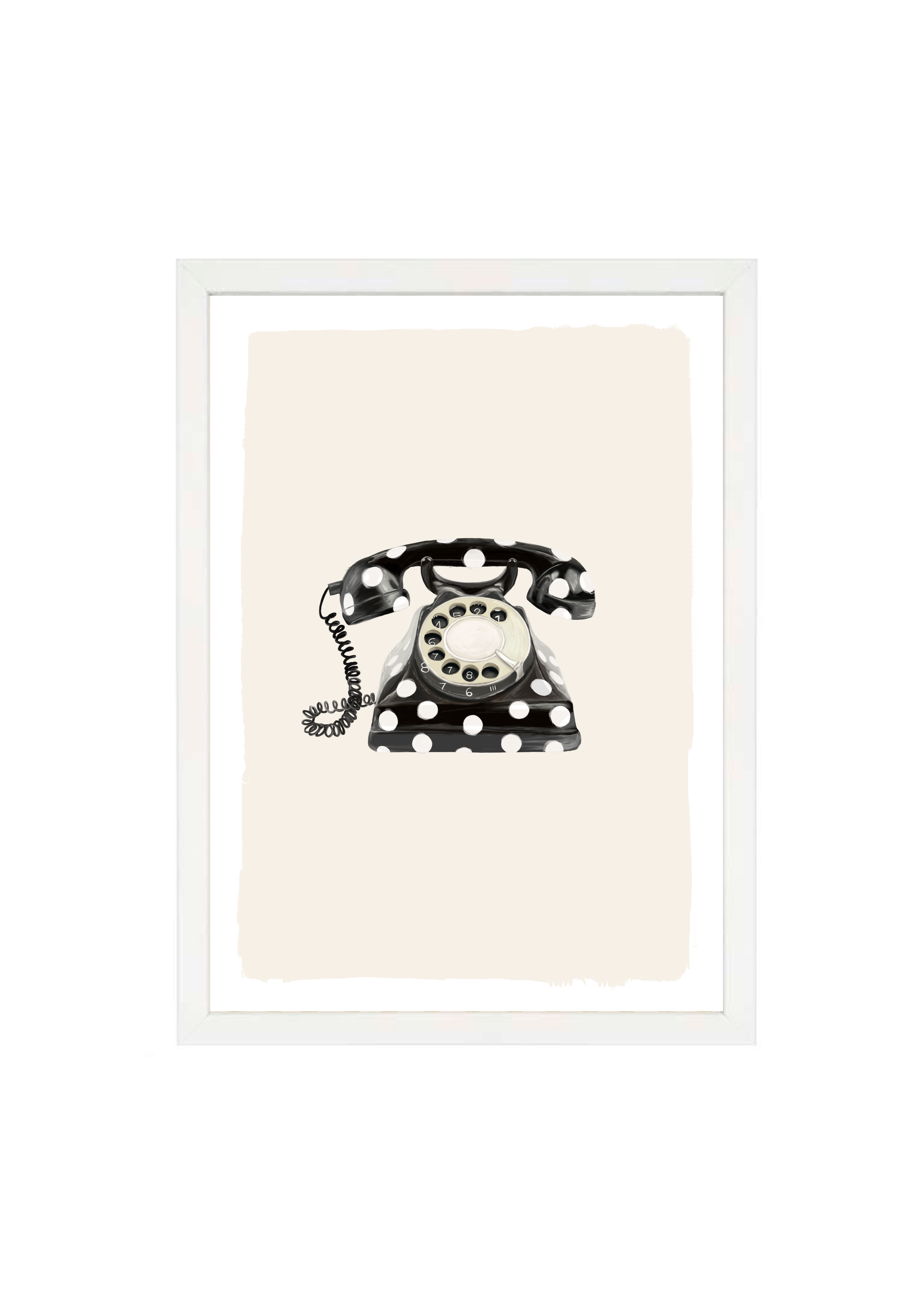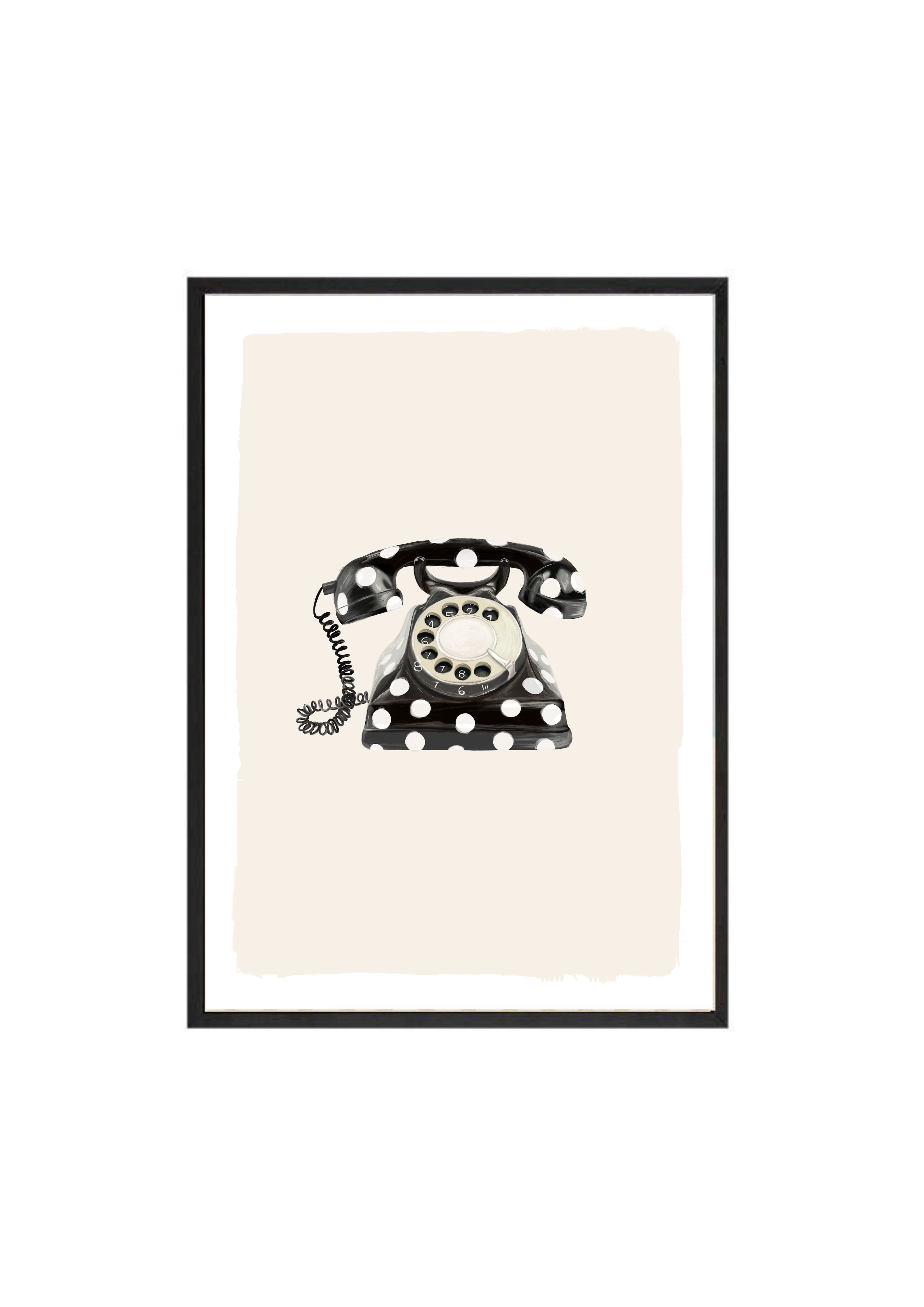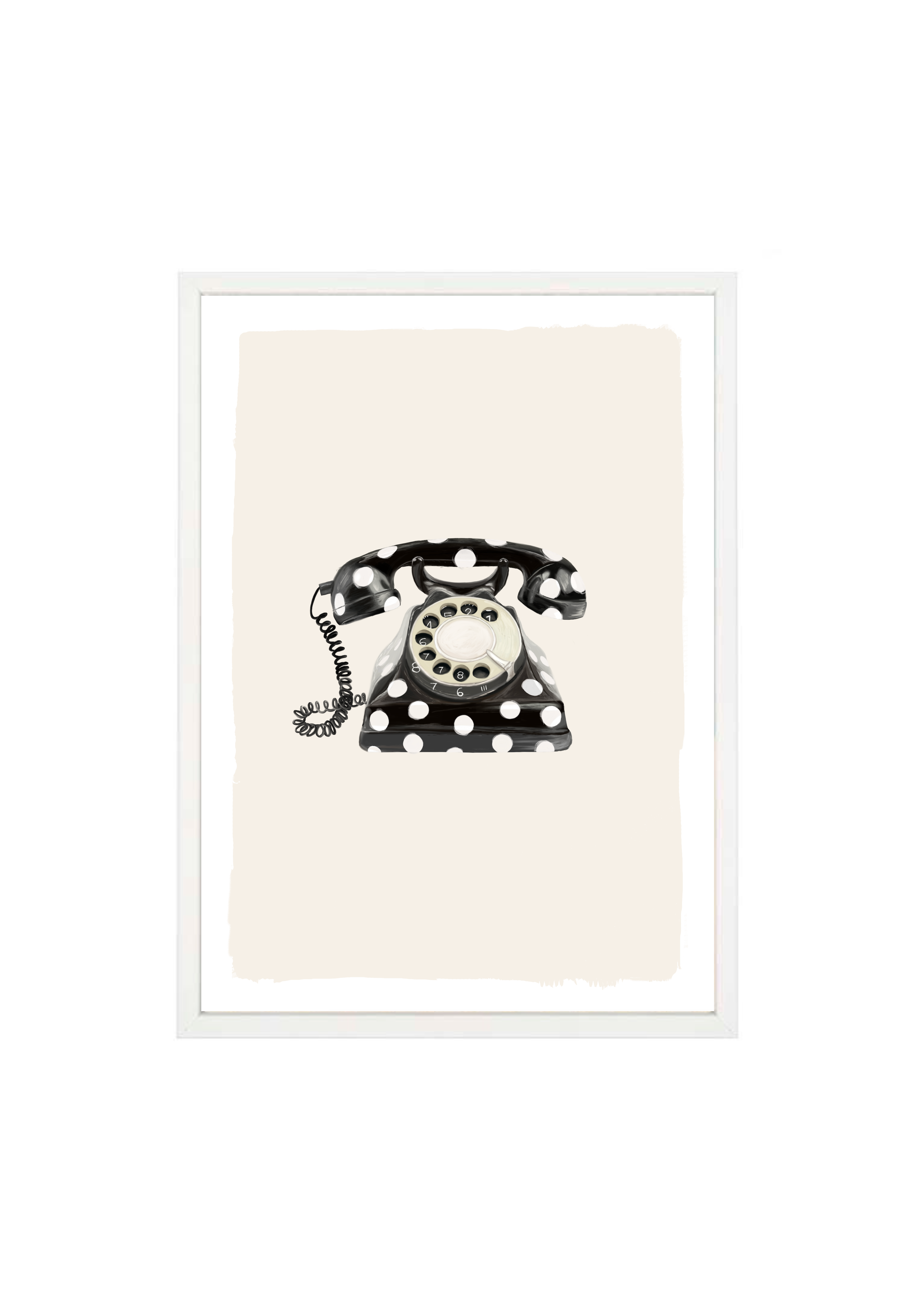 Call Me Dotty brings a nostalgic nod to the art of conversation - featuring a classic rotary telephone adorned in bold black-and-white polka dots. A statement print that blends humour with elegance, perfect for spaces that don’t take themselves too seriously.