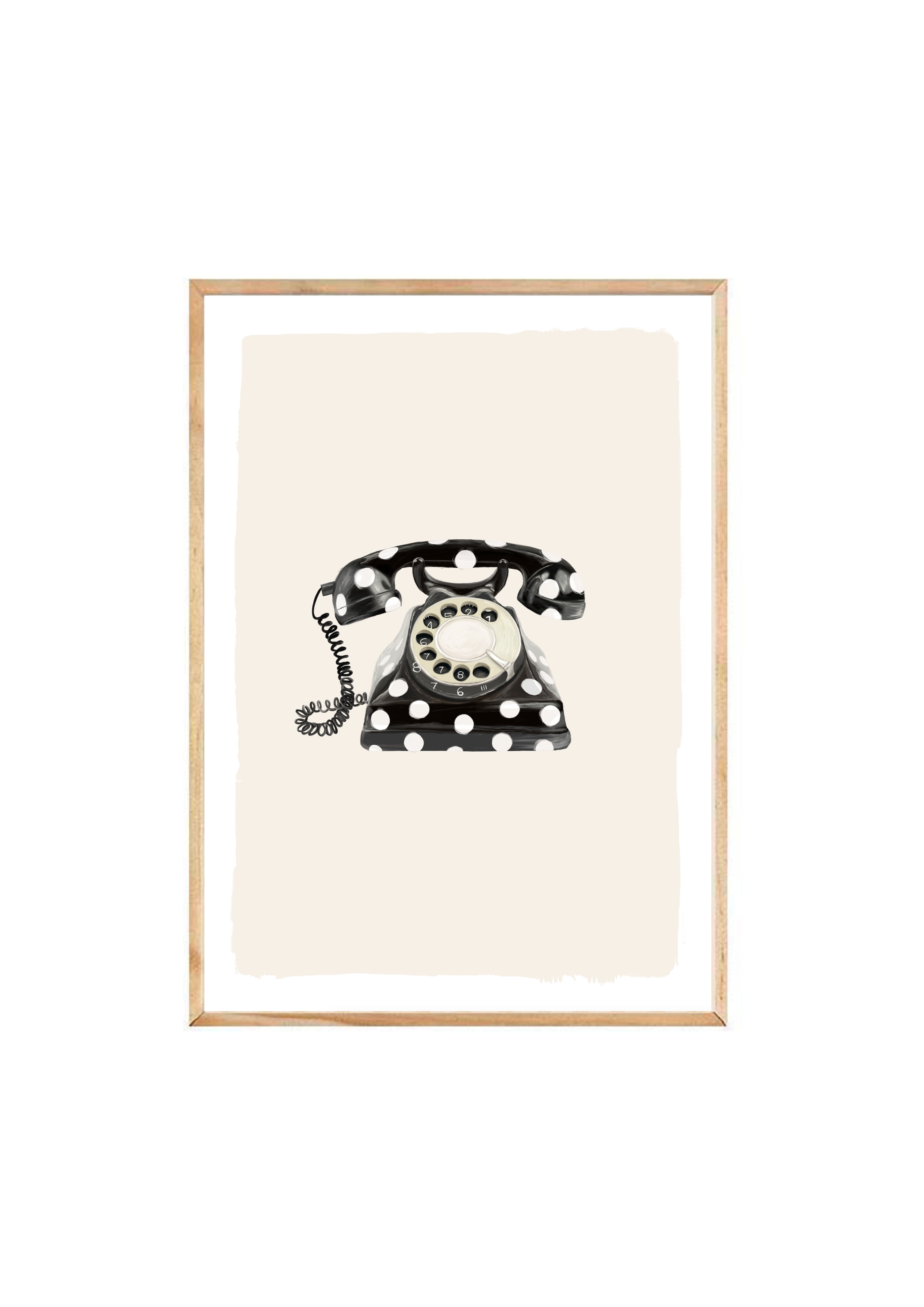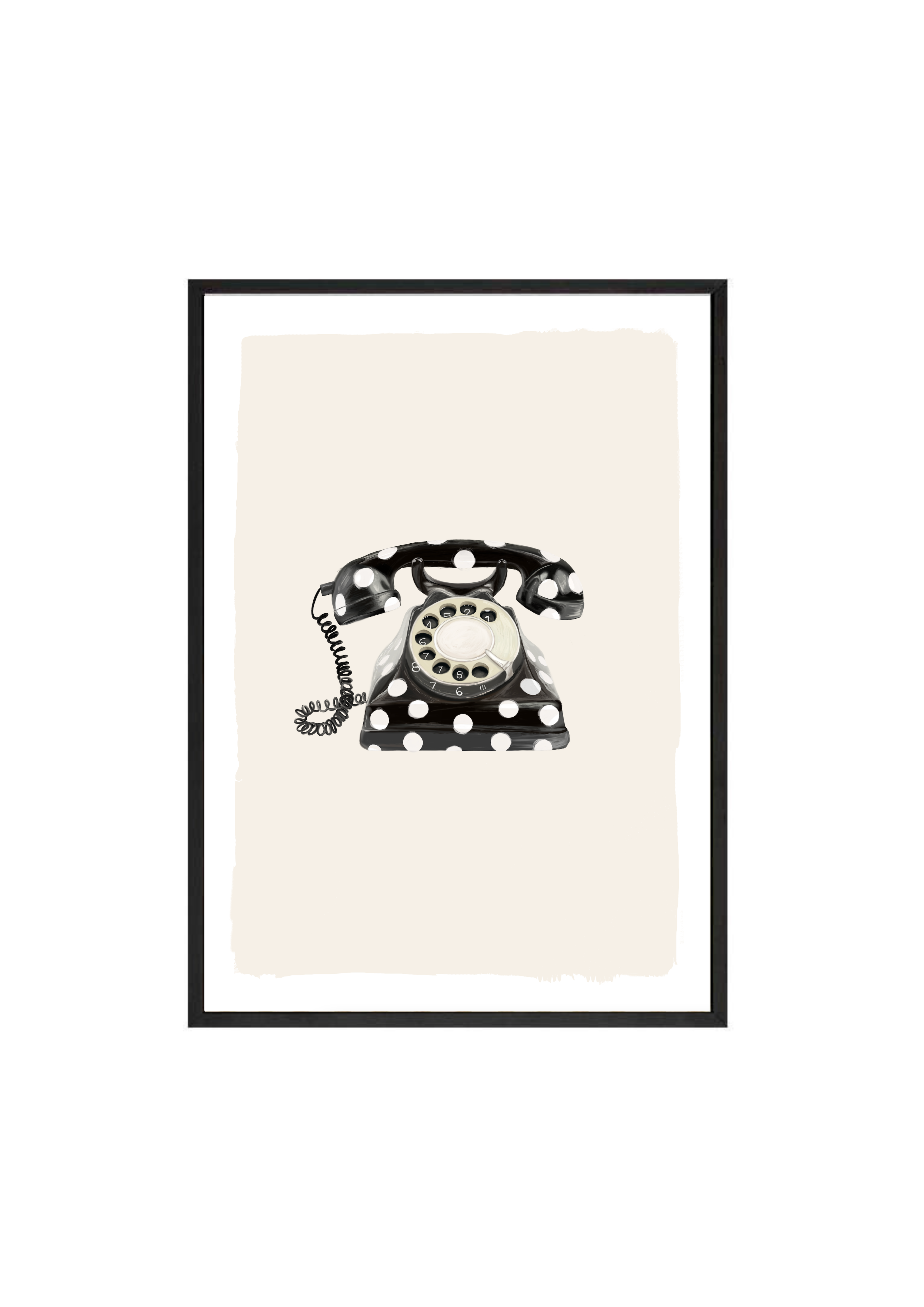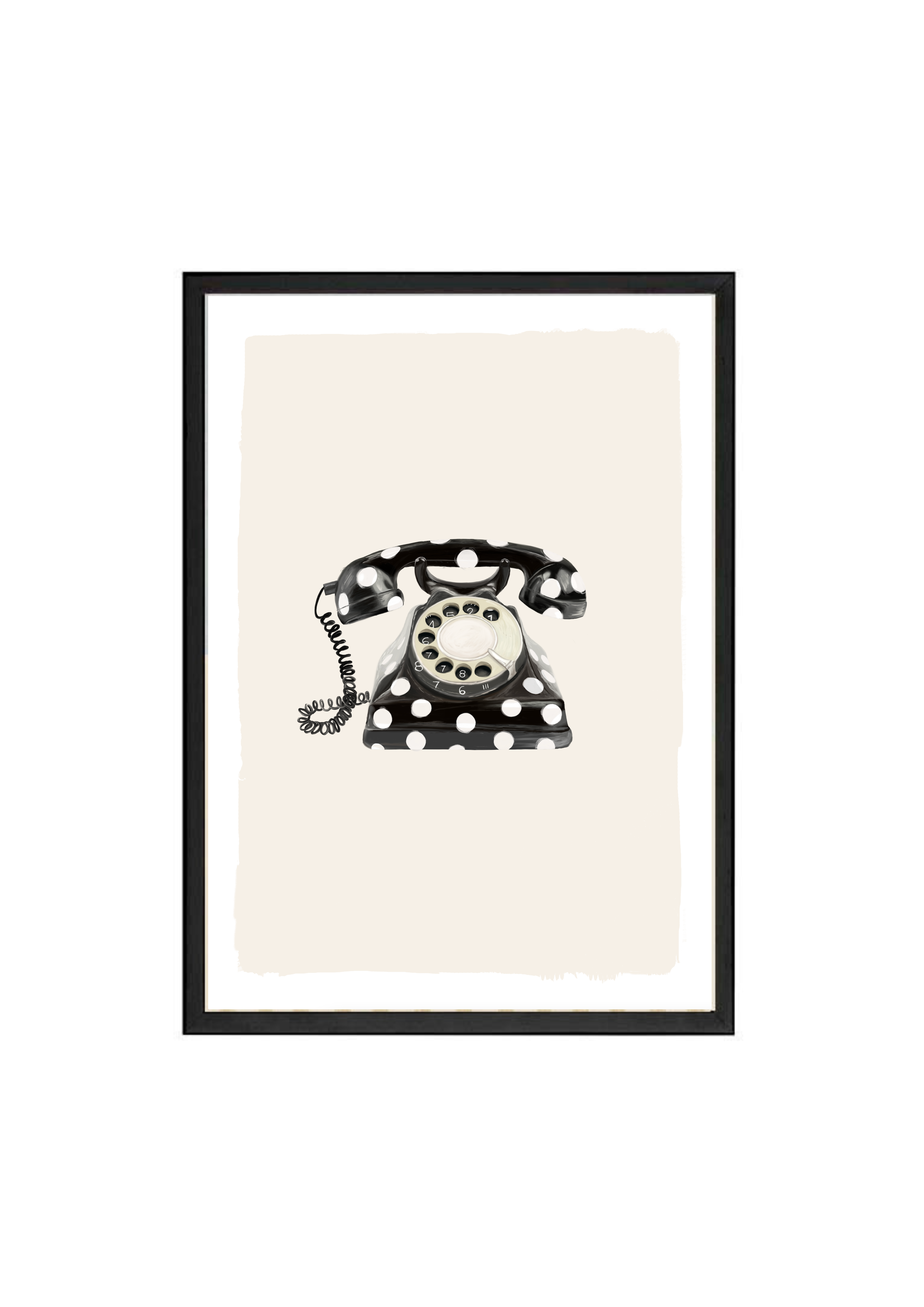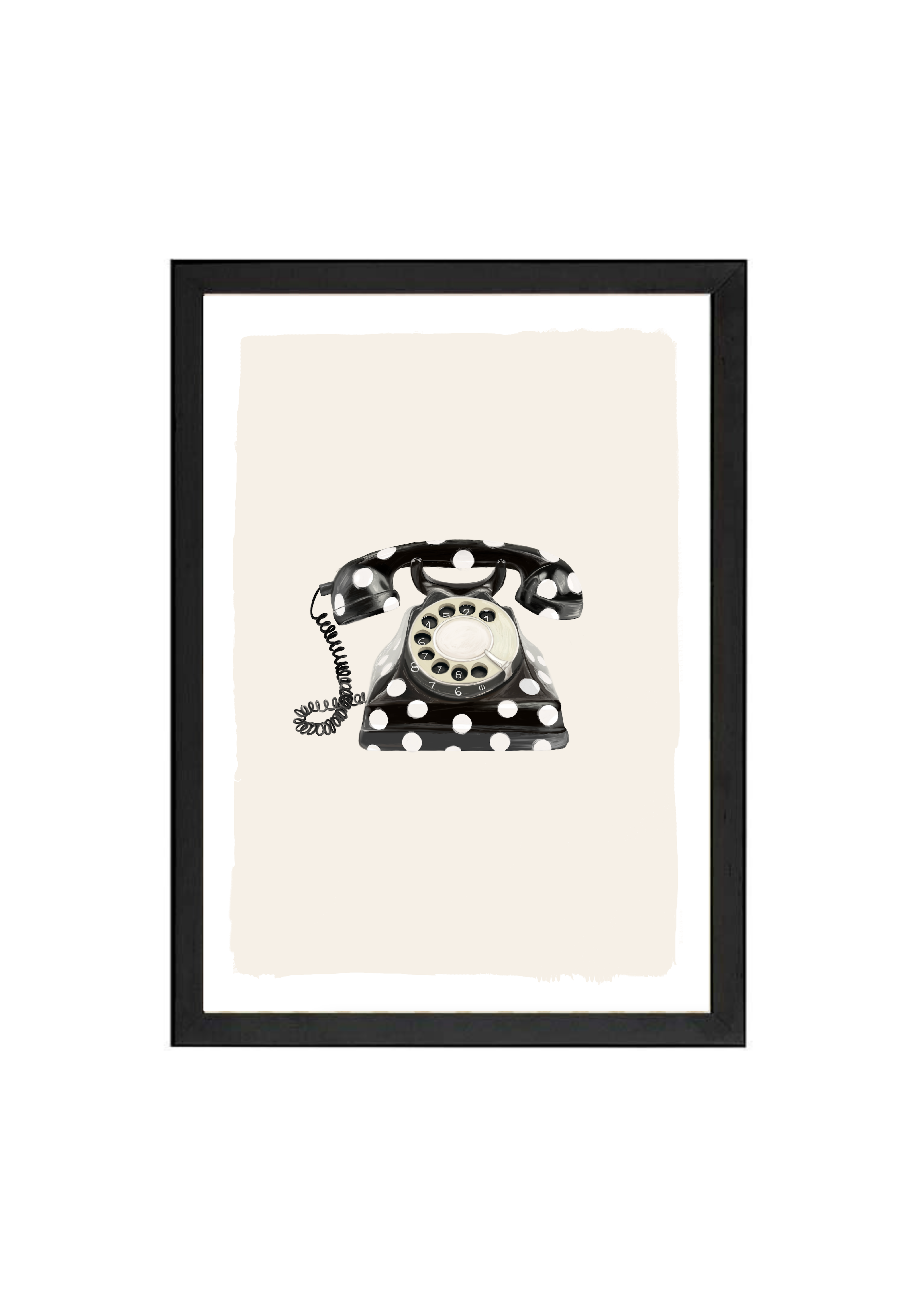 Call Me Dotty brings a nostalgic nod to the art of conversation - featuring a classic rotary telephone adorned in bold black-and-white polka dots. A statement print that blends humour with elegance, perfect for spaces that don’t take themselves too seriously.