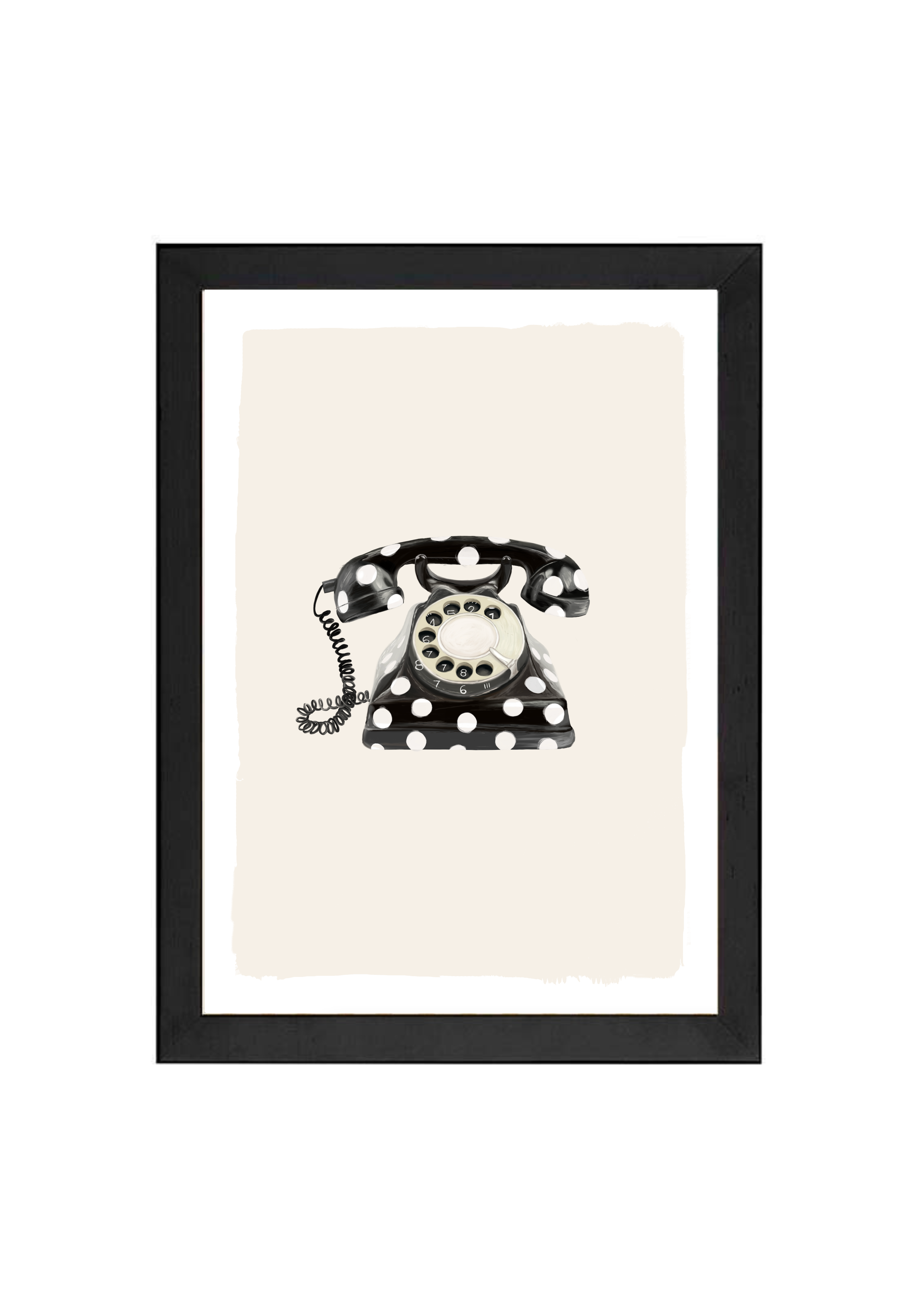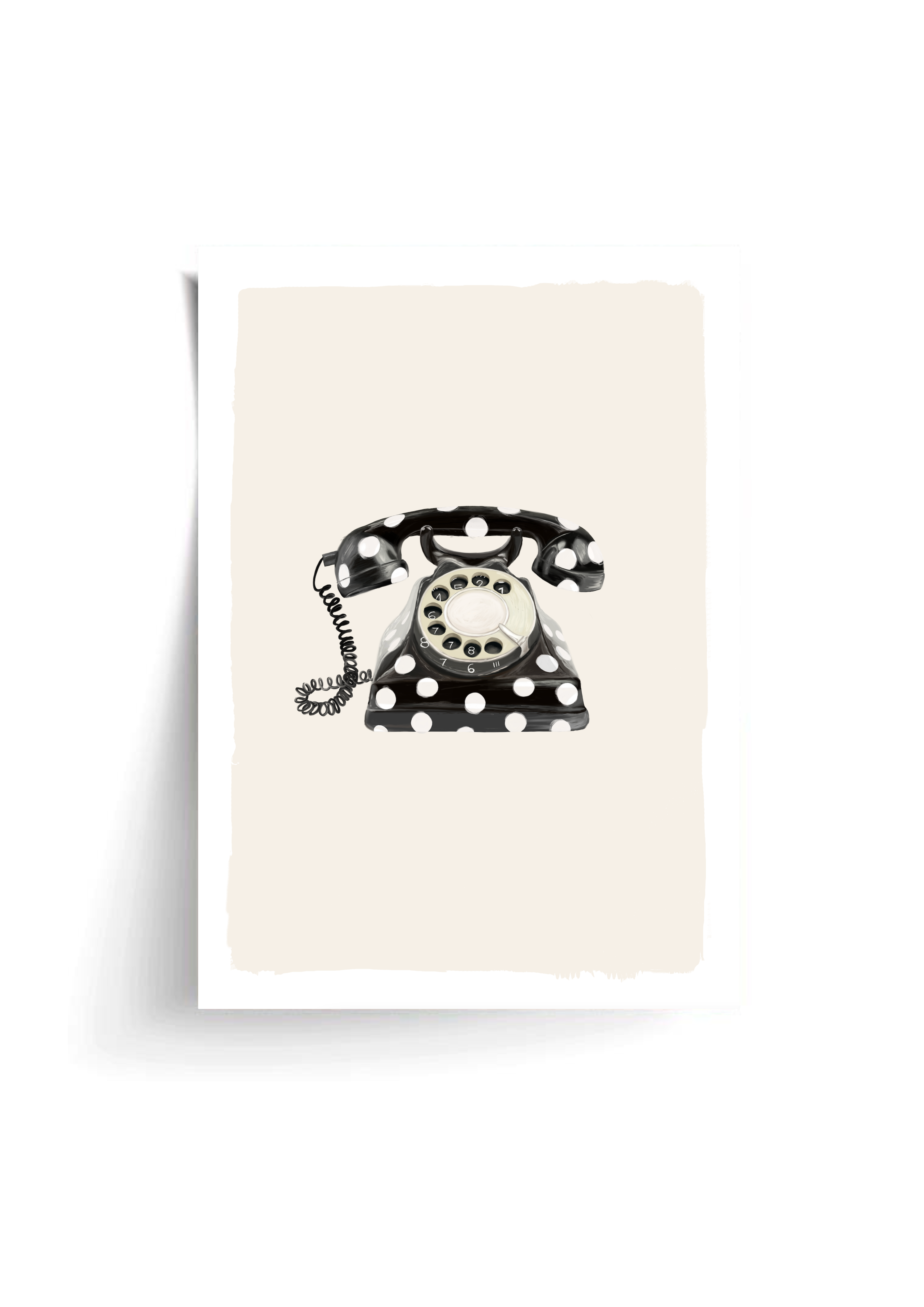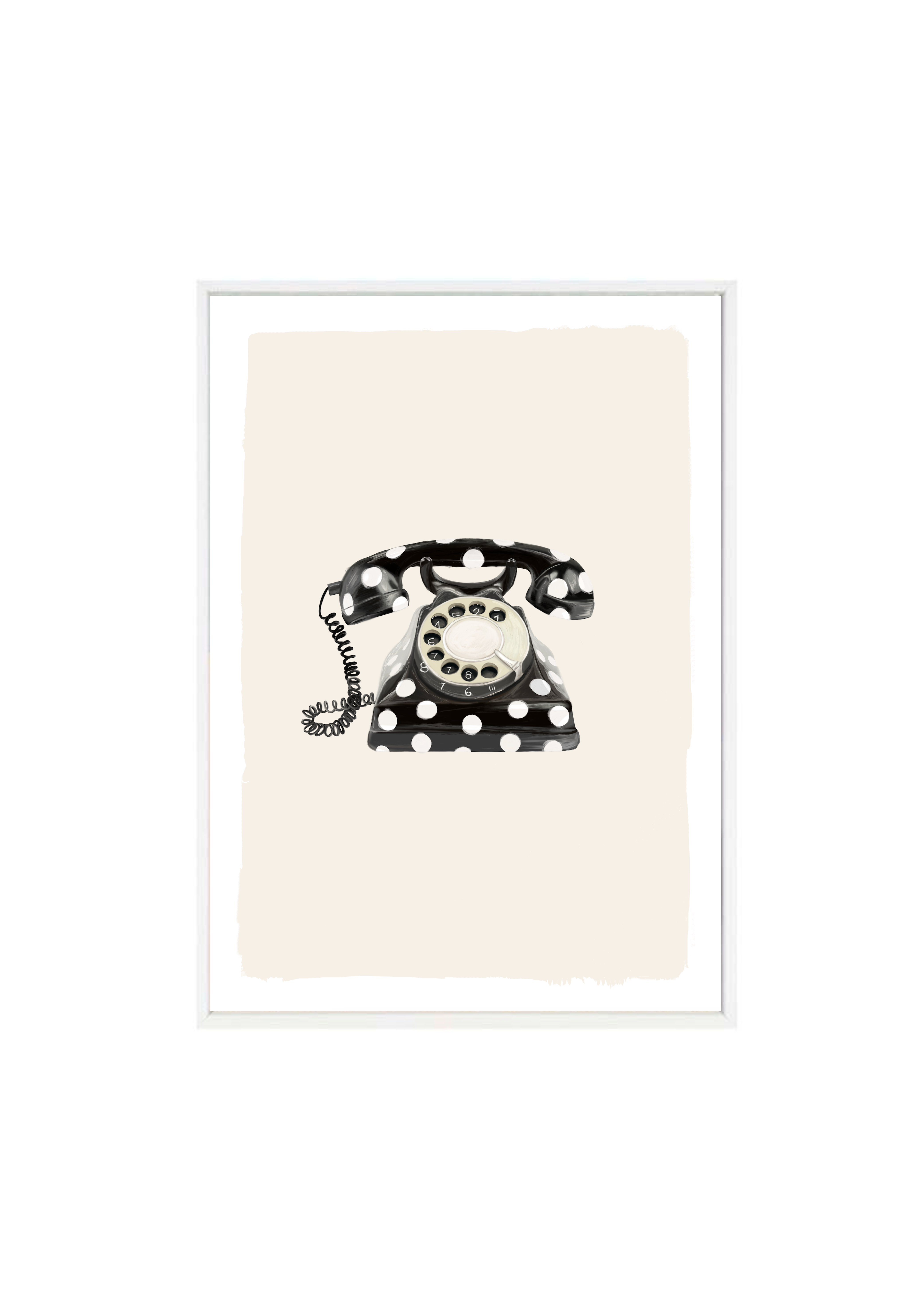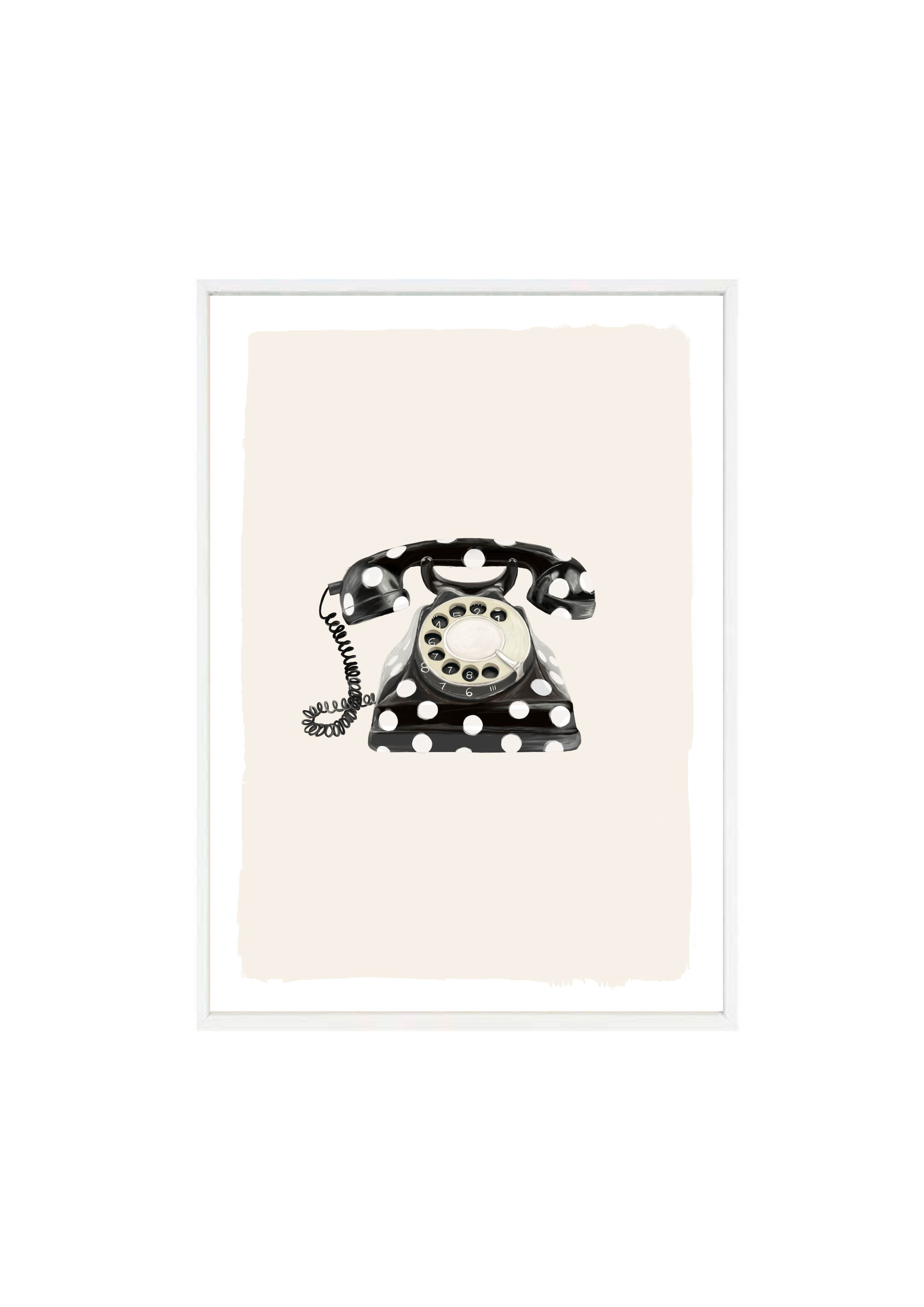 Call Me Dotty brings a nostalgic nod to the art of conversation - featuring a classic rotary telephone adorned in bold black-and-white polka dots. A statement print that blends humour with elegance, perfect for spaces that don’t take themselves too seriously.