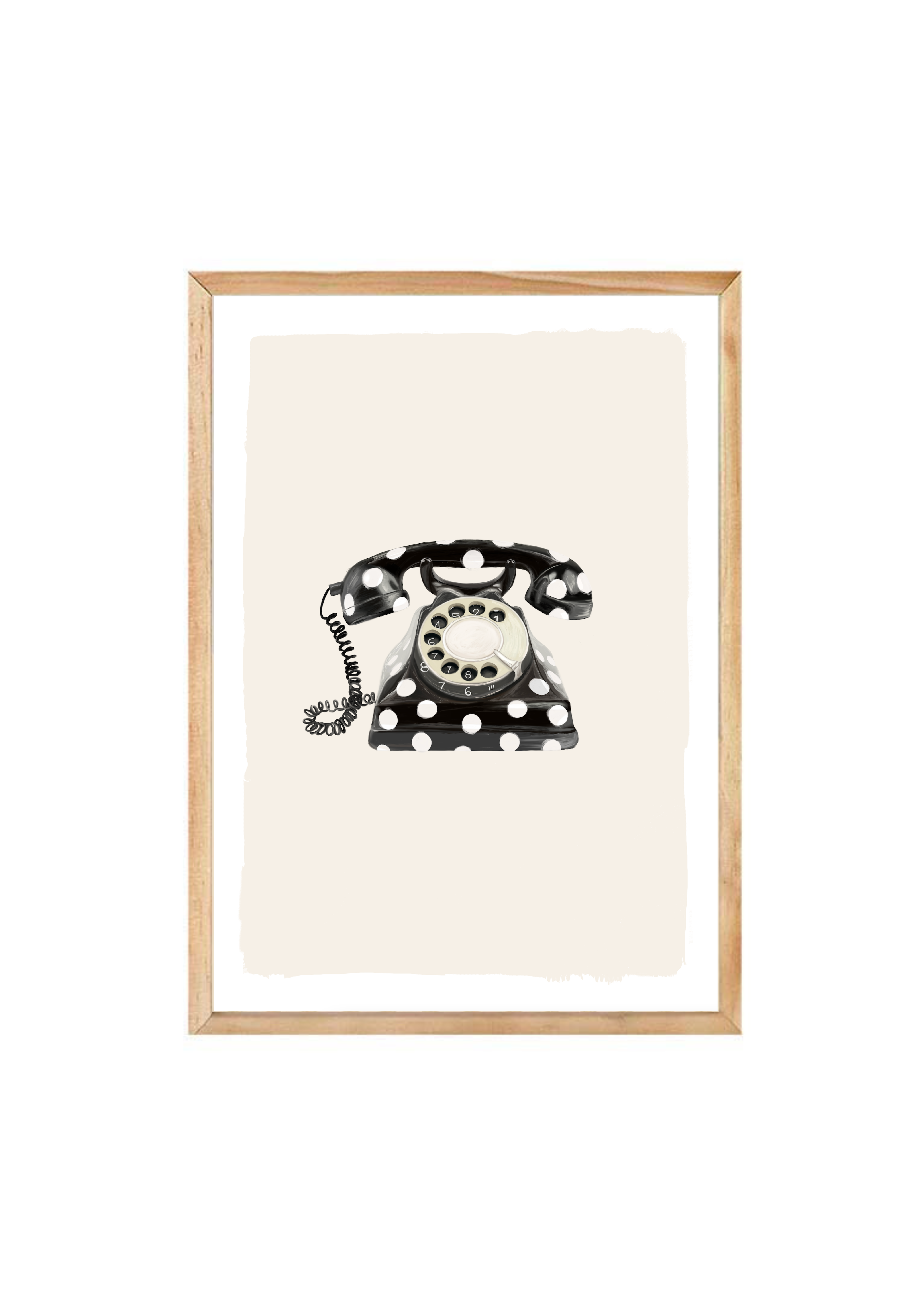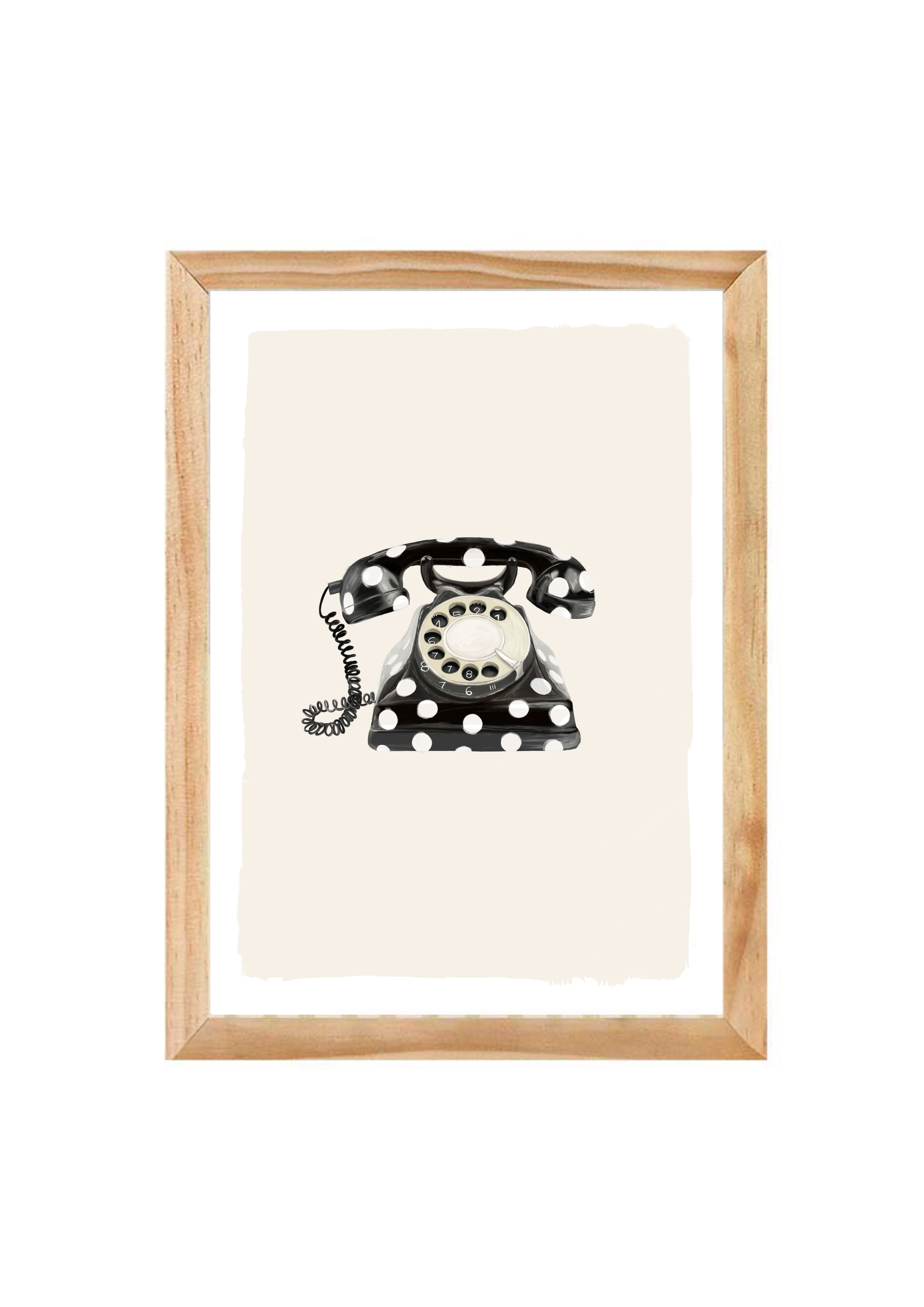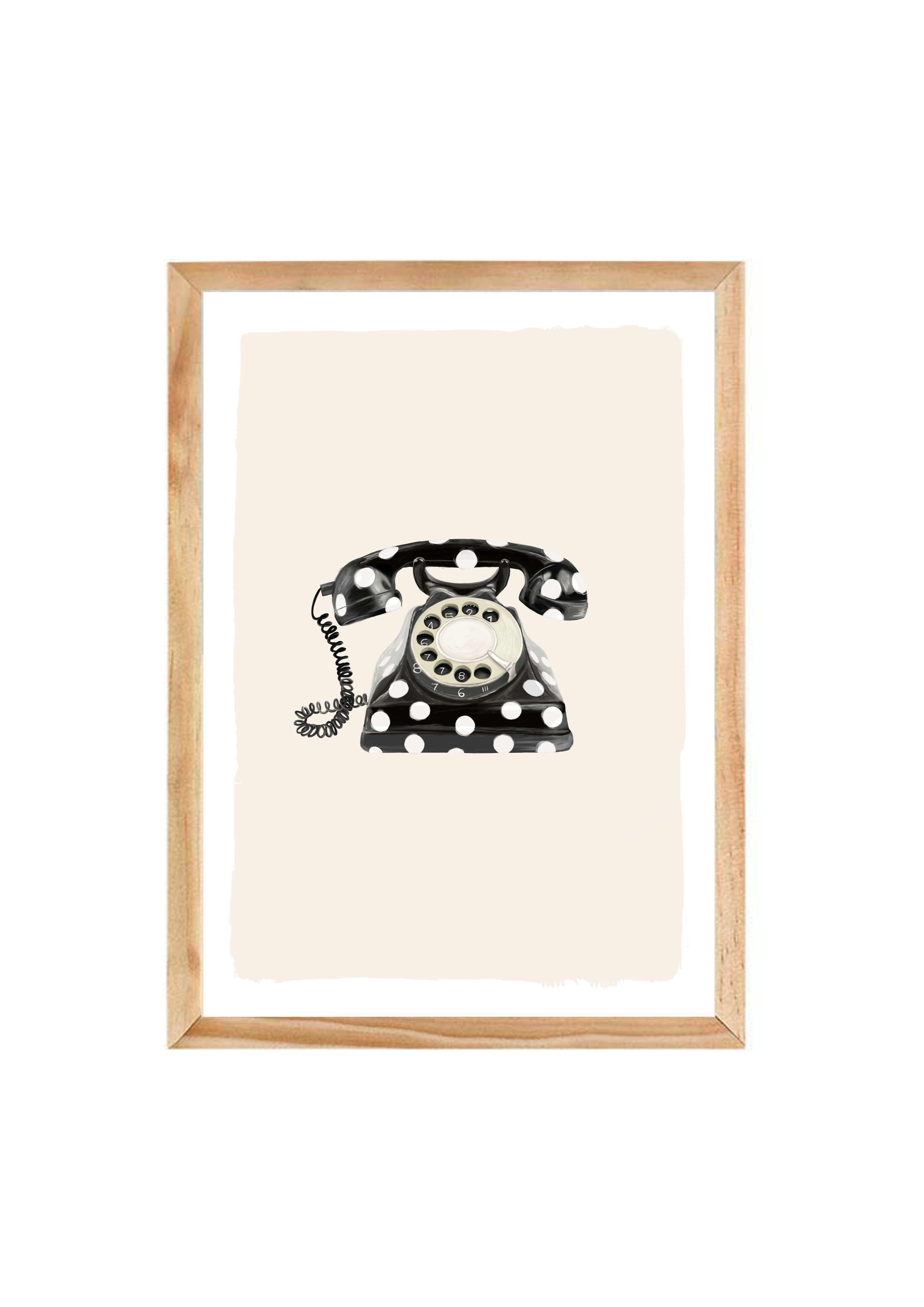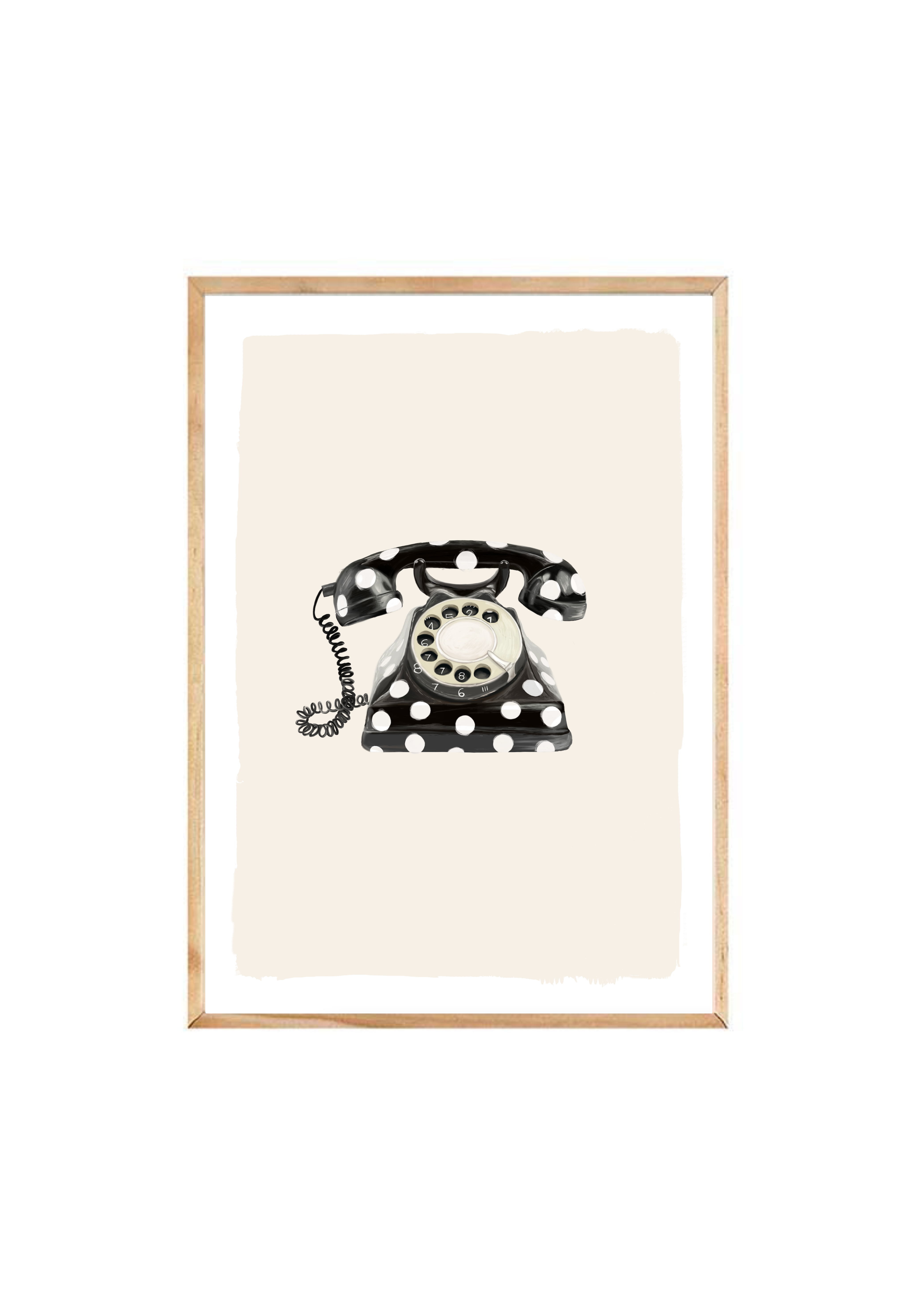 Call Me Dotty brings a nostalgic nod to the art of conversation - featuring a classic rotary telephone adorned in bold black-and-white polka dots. A statement print that blends humour with elegance, perfect for spaces that don’t take themselves too seriously.