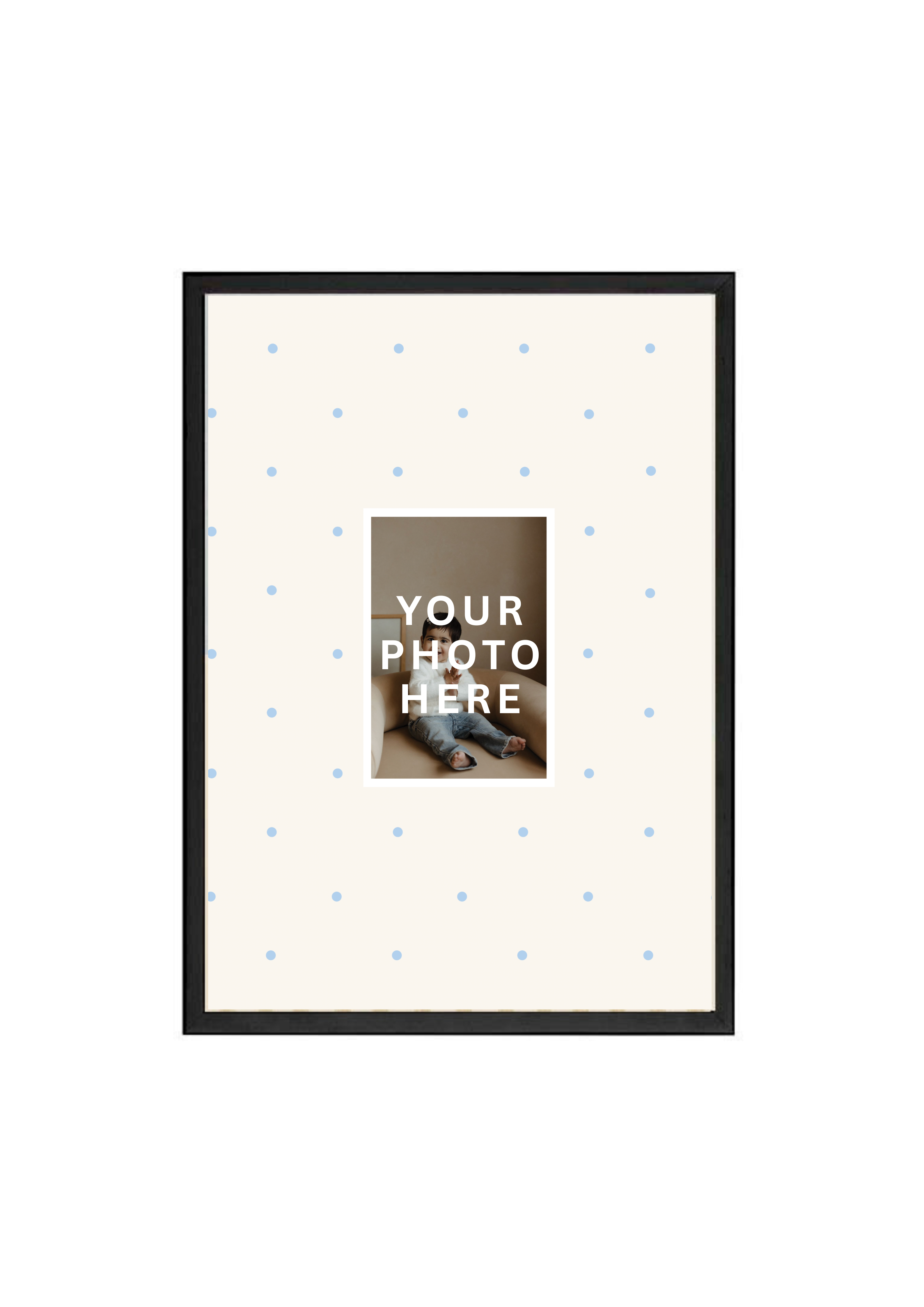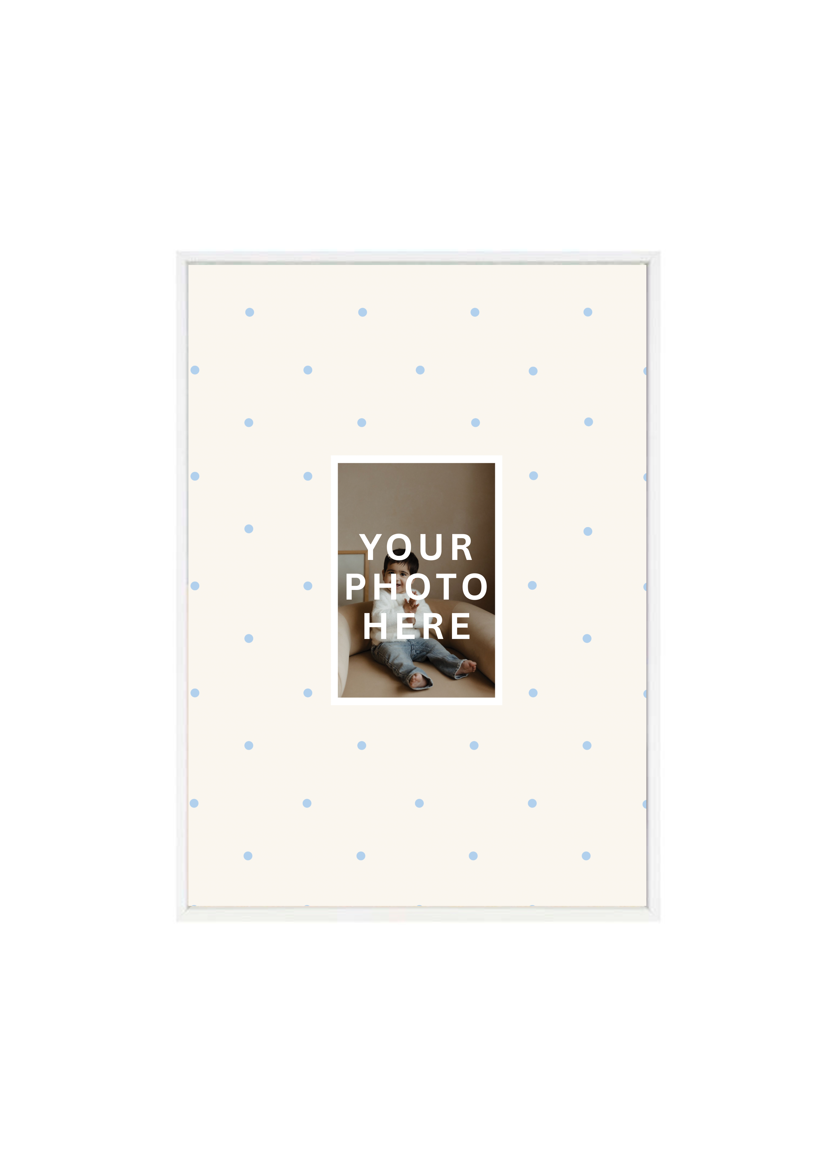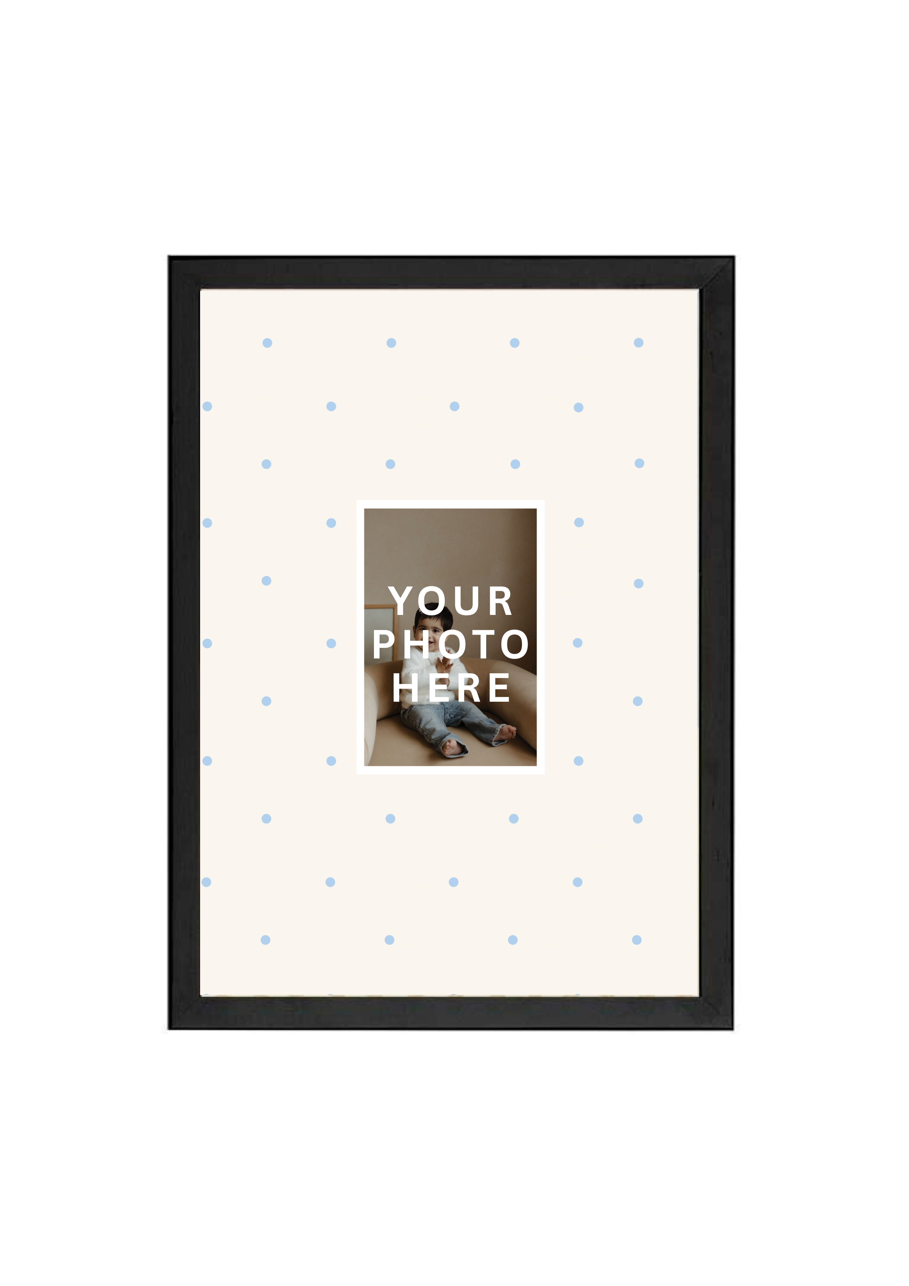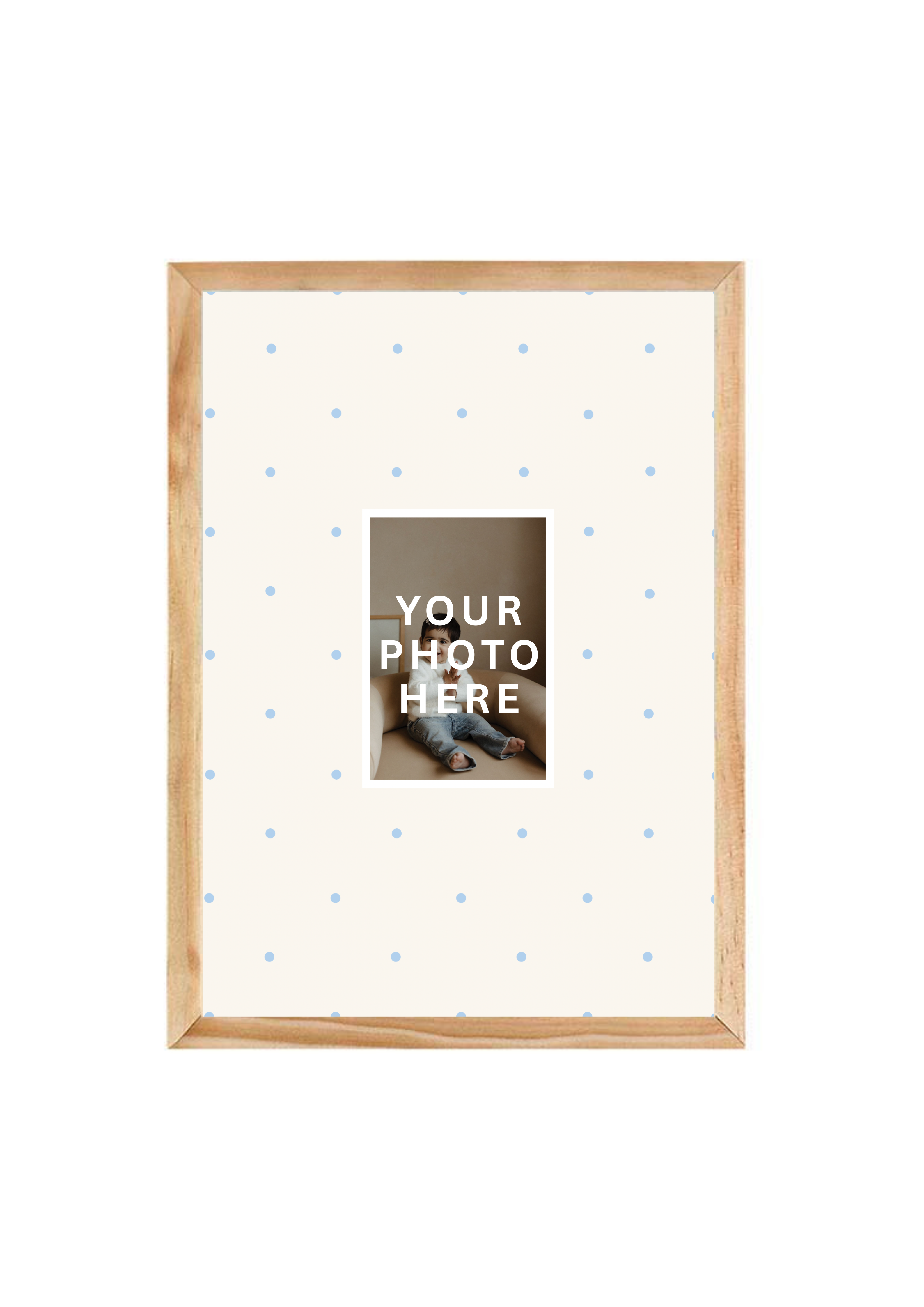 Our Polka Dot Photo Mat in Frost captures the elegance of simplicity subtle blue dots scattered across a neutral base, creating a refined backdrop for your most treasured photos.