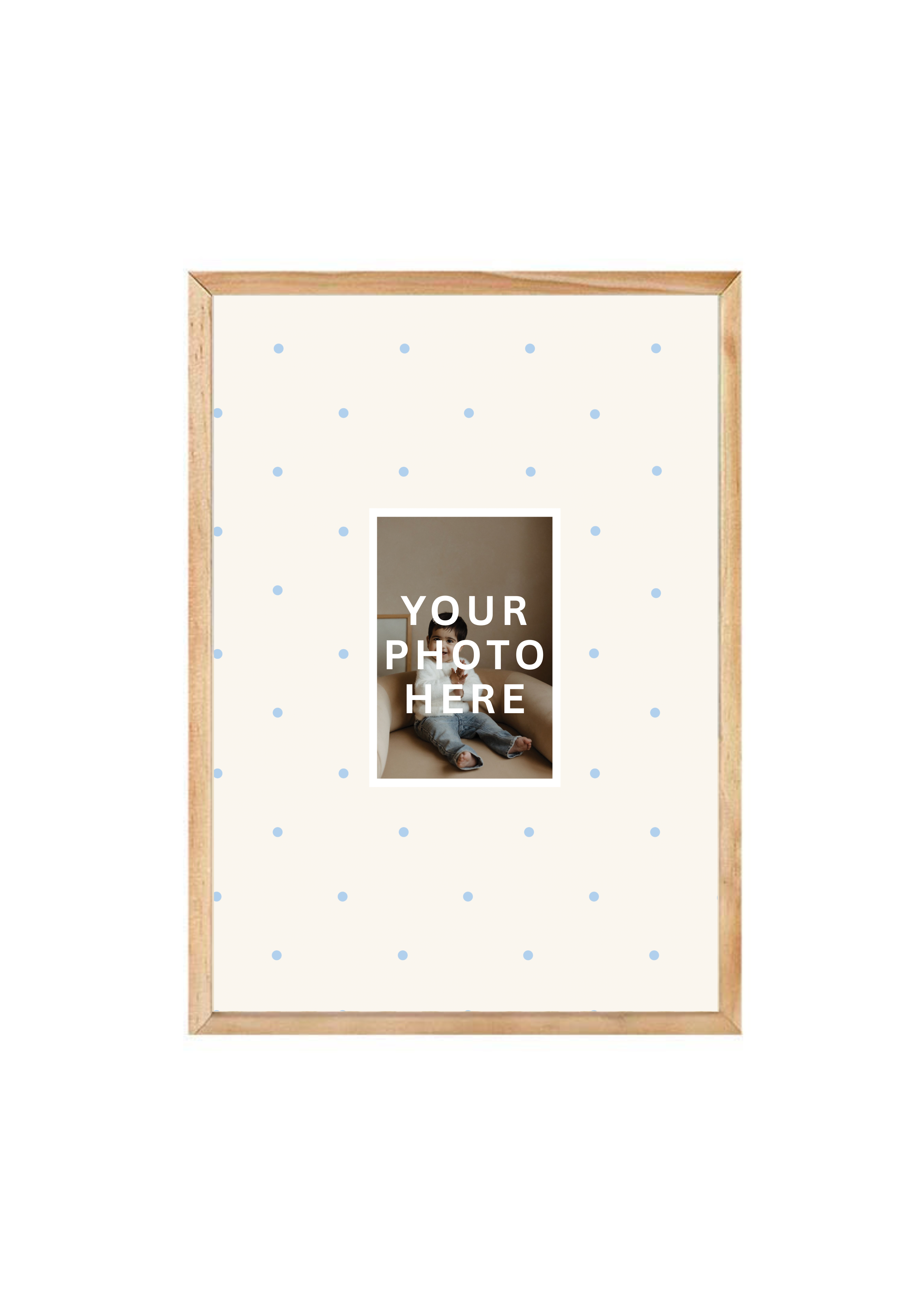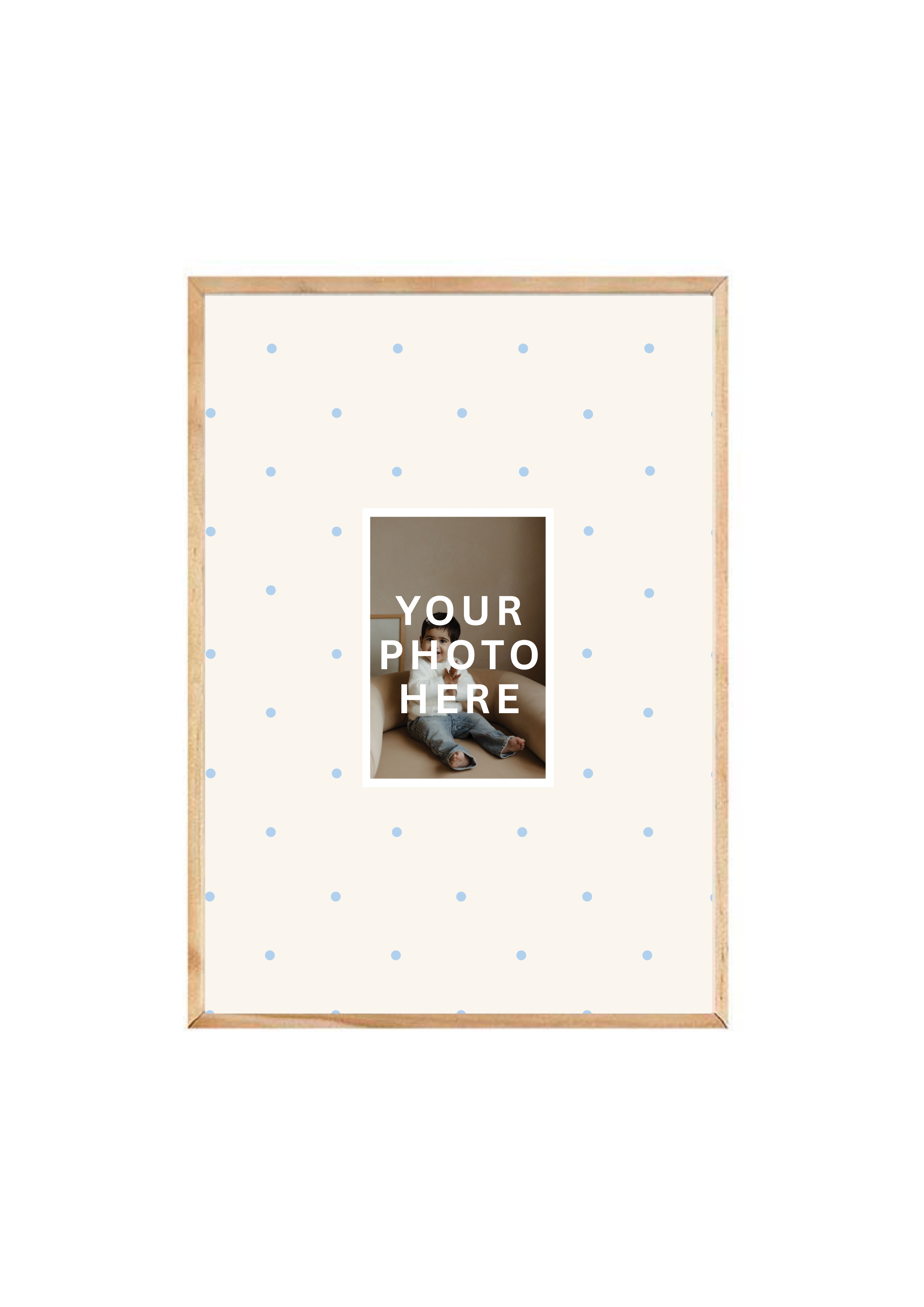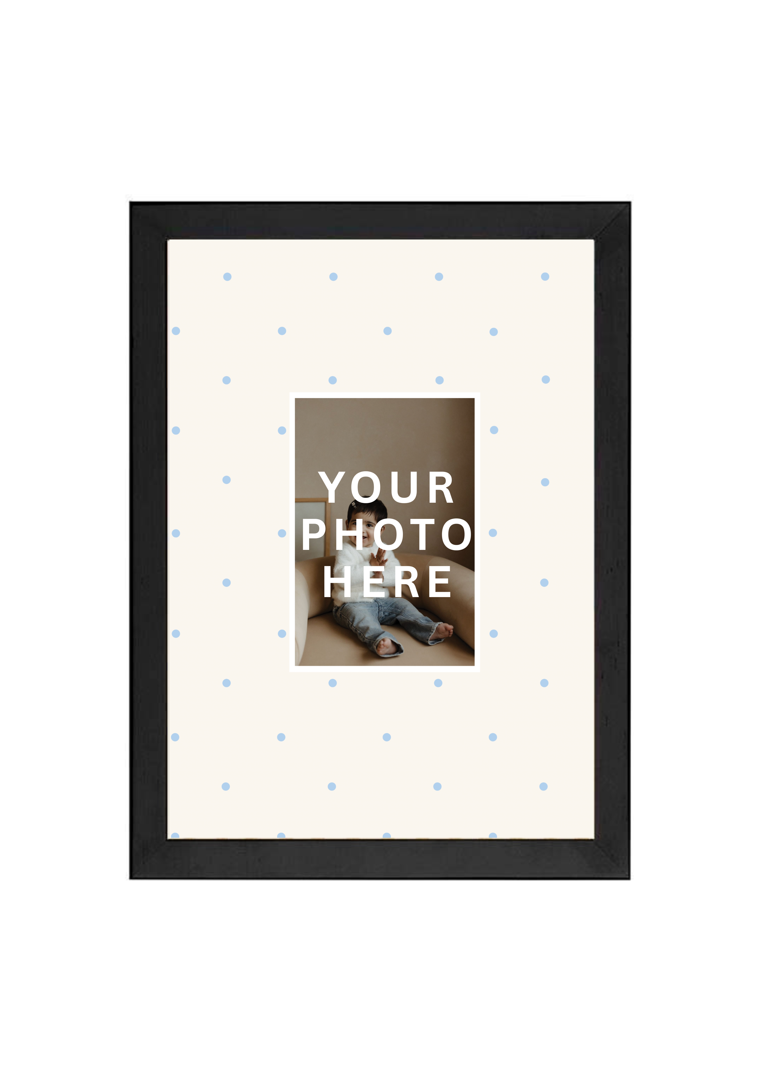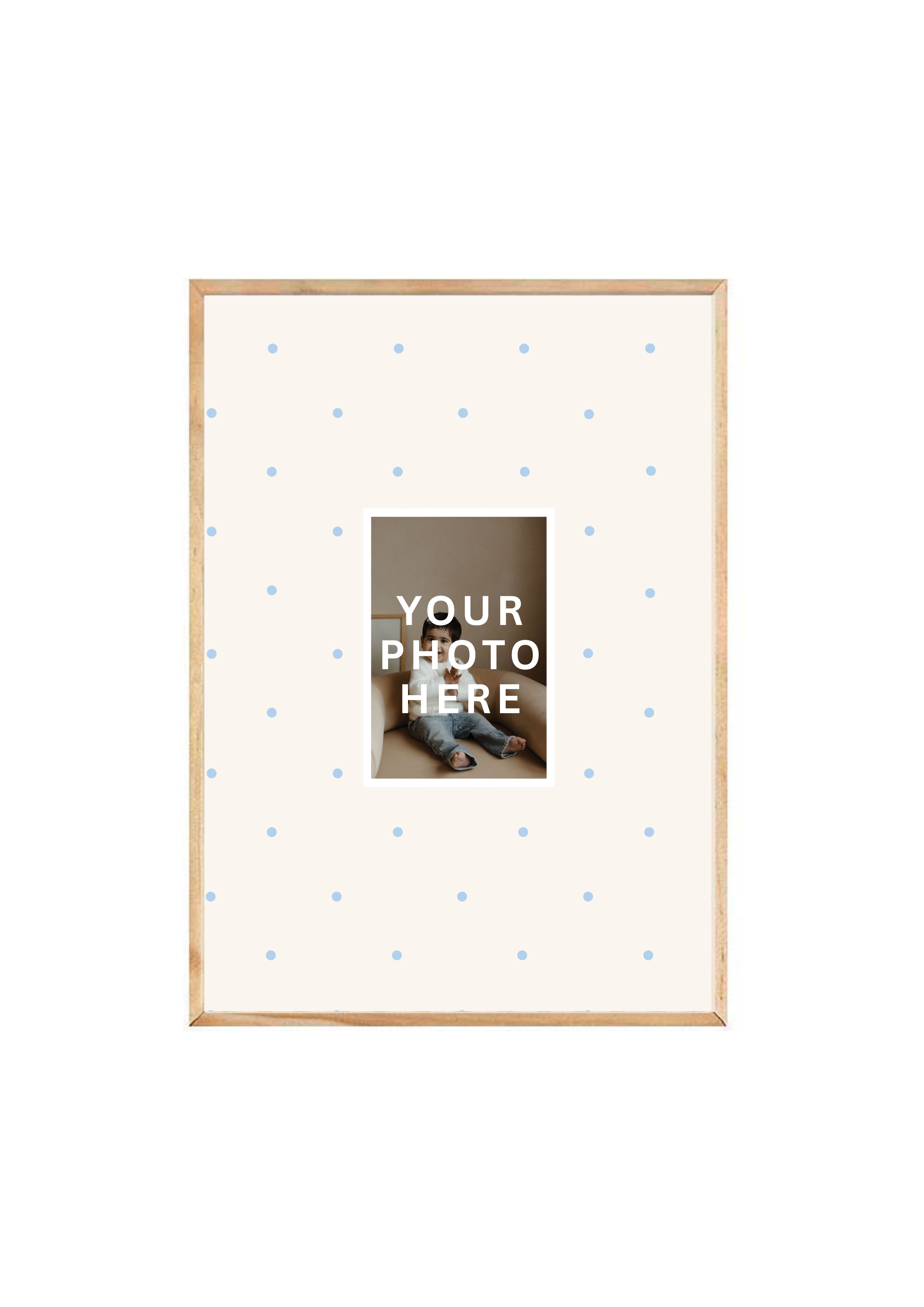 Our Polka Dot Photo Mat in Frost captures the elegance of simplicity subtle blue dots scattered across a neutral base, creating a refined backdrop for your most treasured photos.