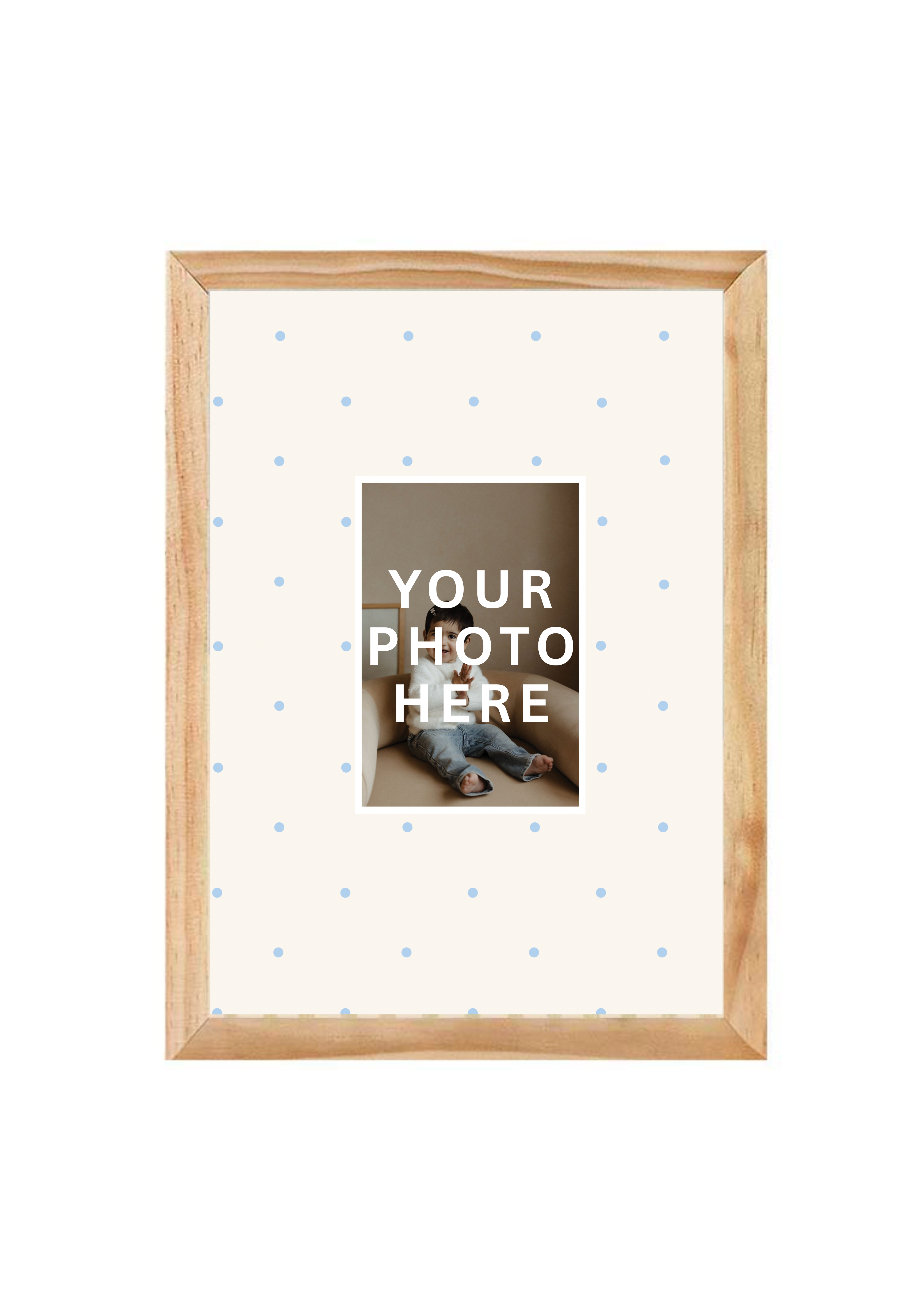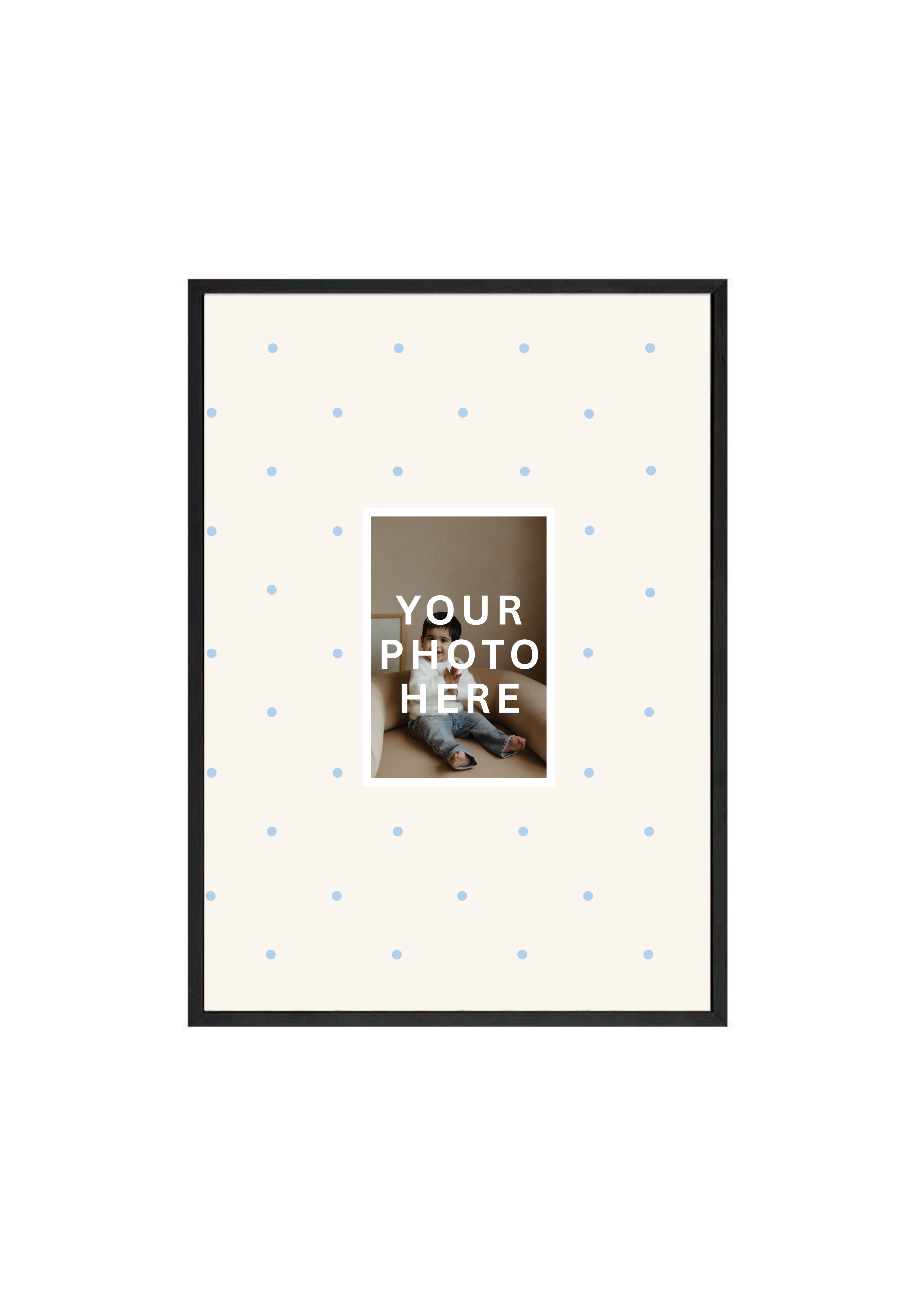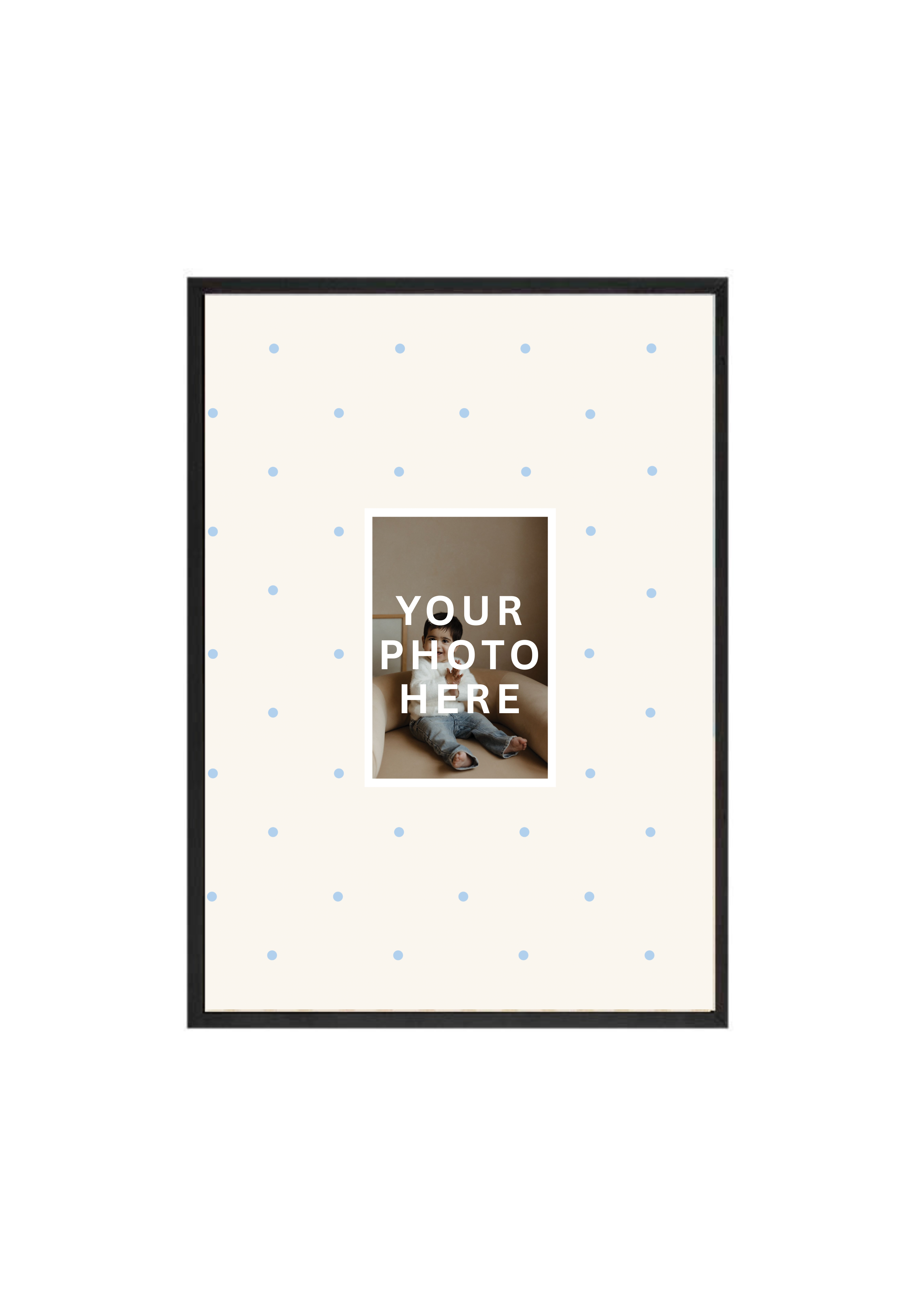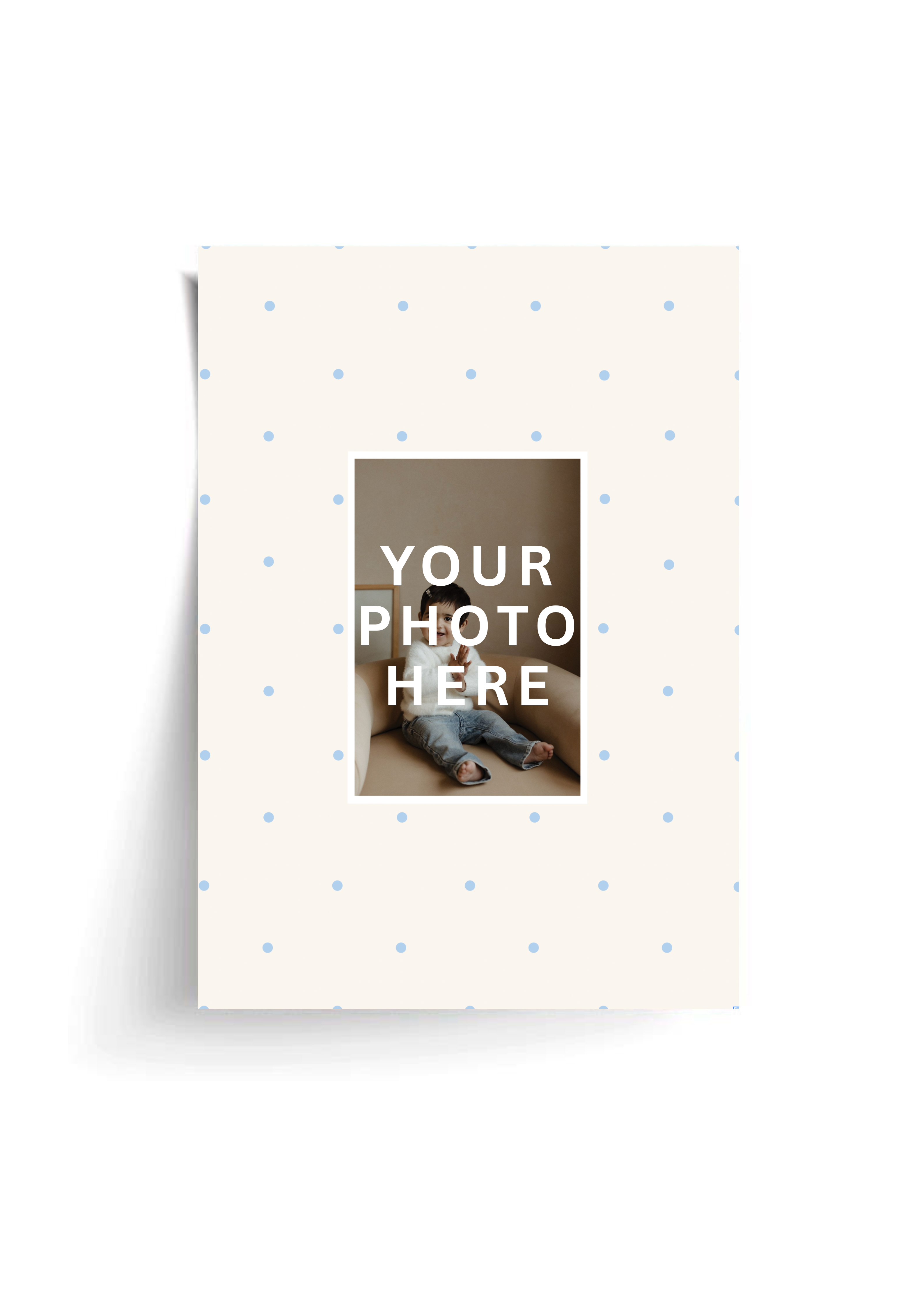 Our Polka Dot Photo Mat in Frost captures the elegance of simplicity subtle blue dots scattered across a neutral base, creating a refined backdrop for your most treasured photos.