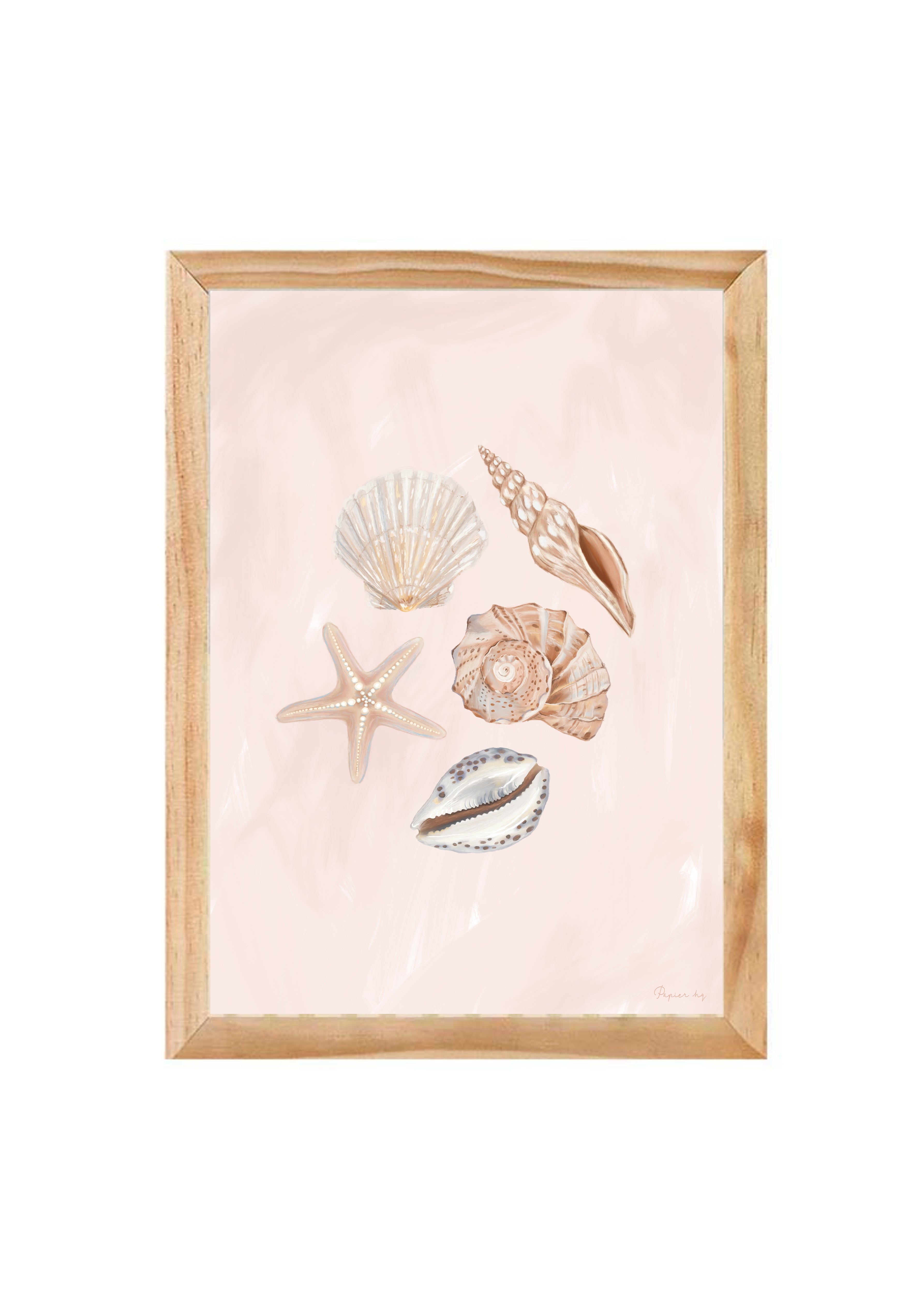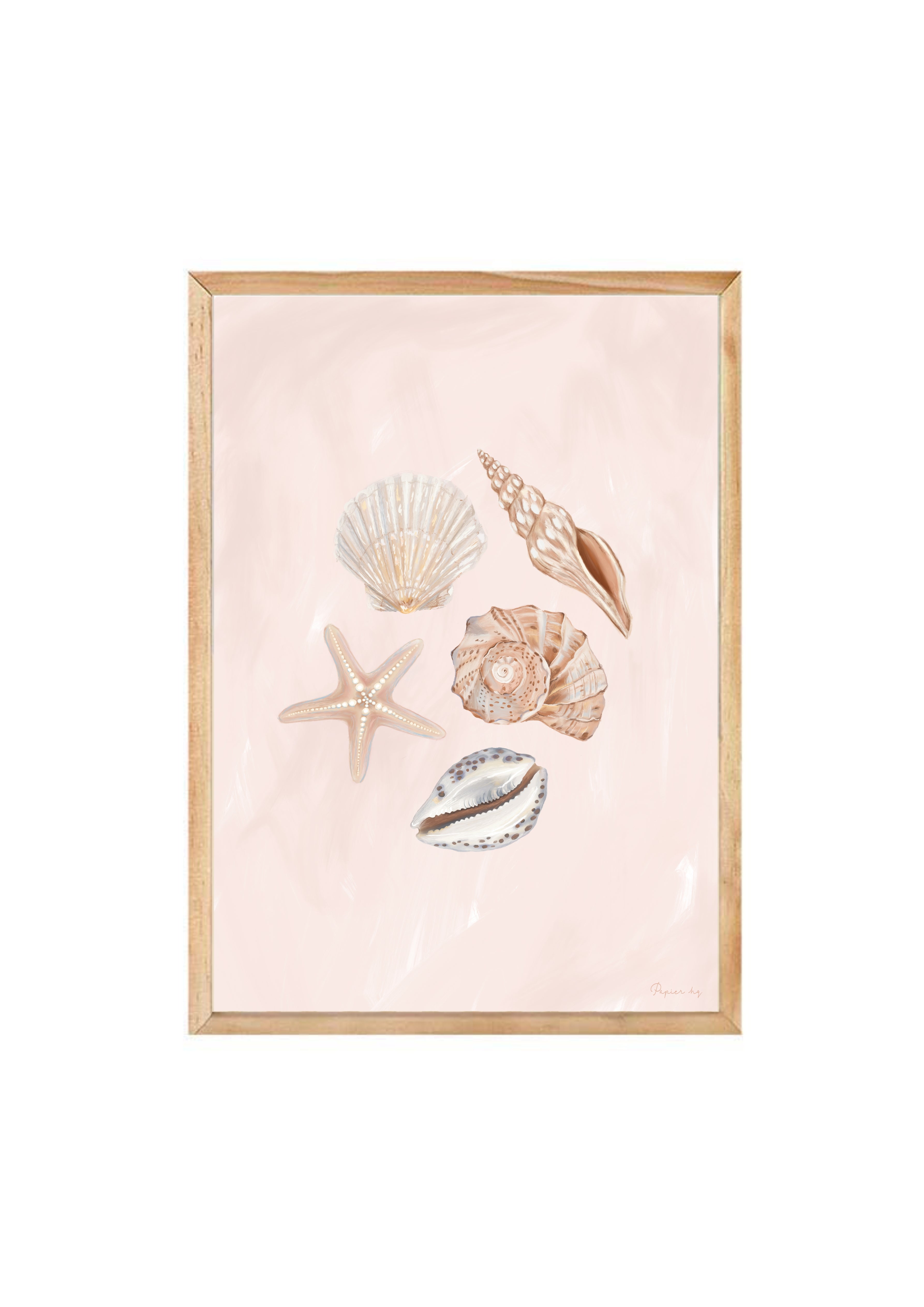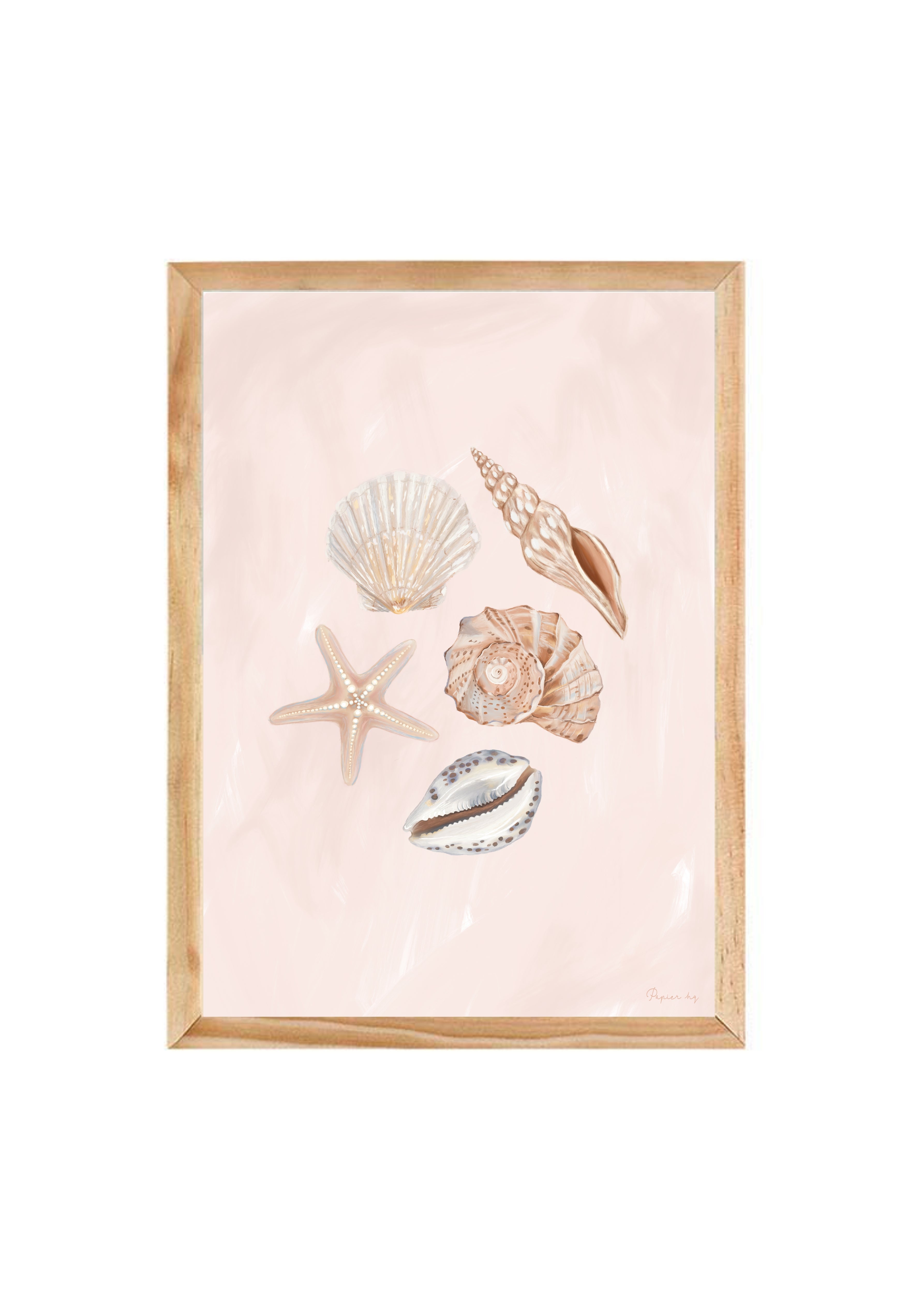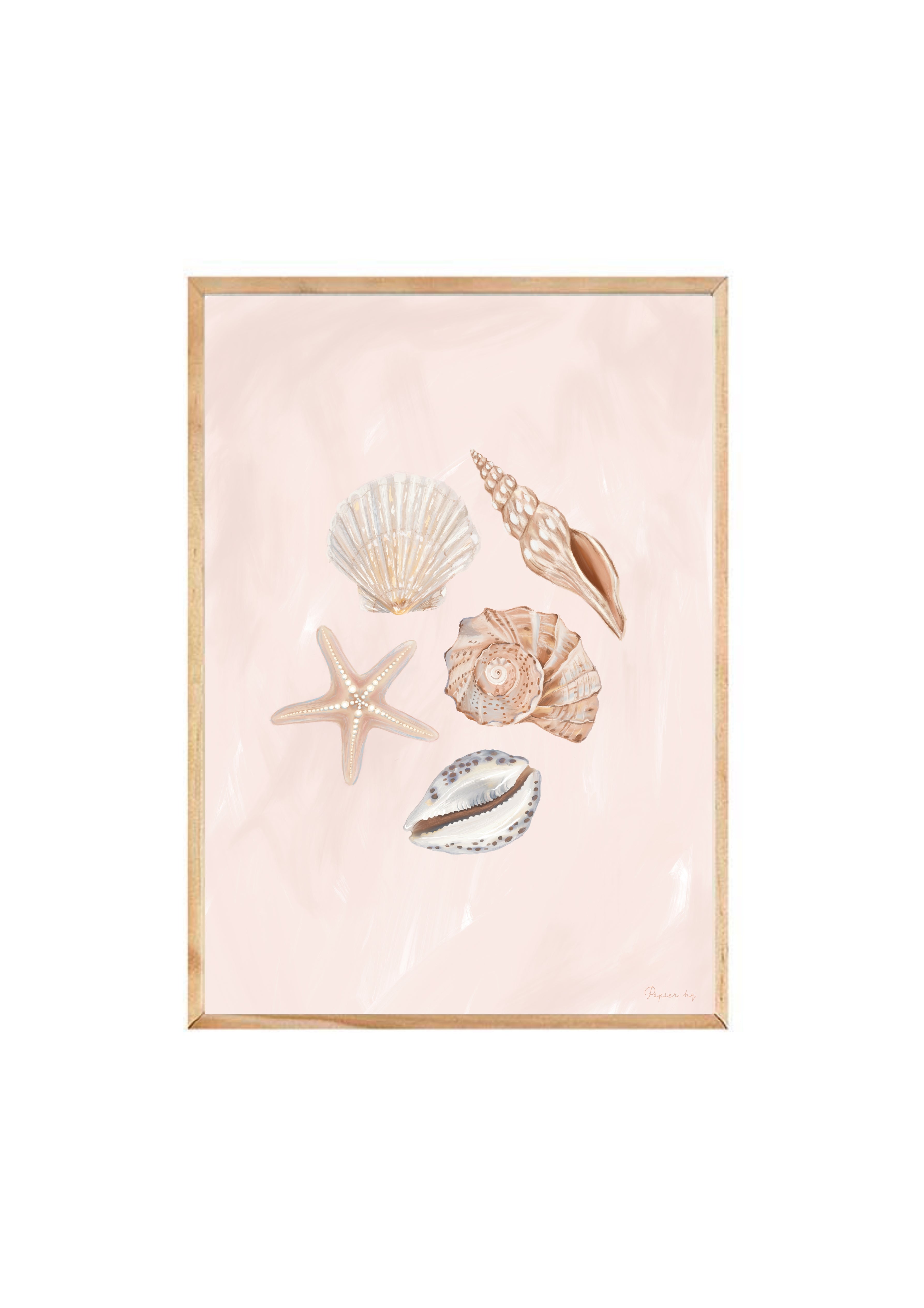 She Sells Sea Shells is a hand-painted coastal artwork featuring a delicate arrangement of seashells in soft blush and sandy tones. With gentle brushwork and refined detailing, this print brings a calm, airy feel to nurseries, bedrooms, or relaxed living spaces. Designed to feel timeless and effortless, it adds a subtle coastal touch while keeping your space light and considered.