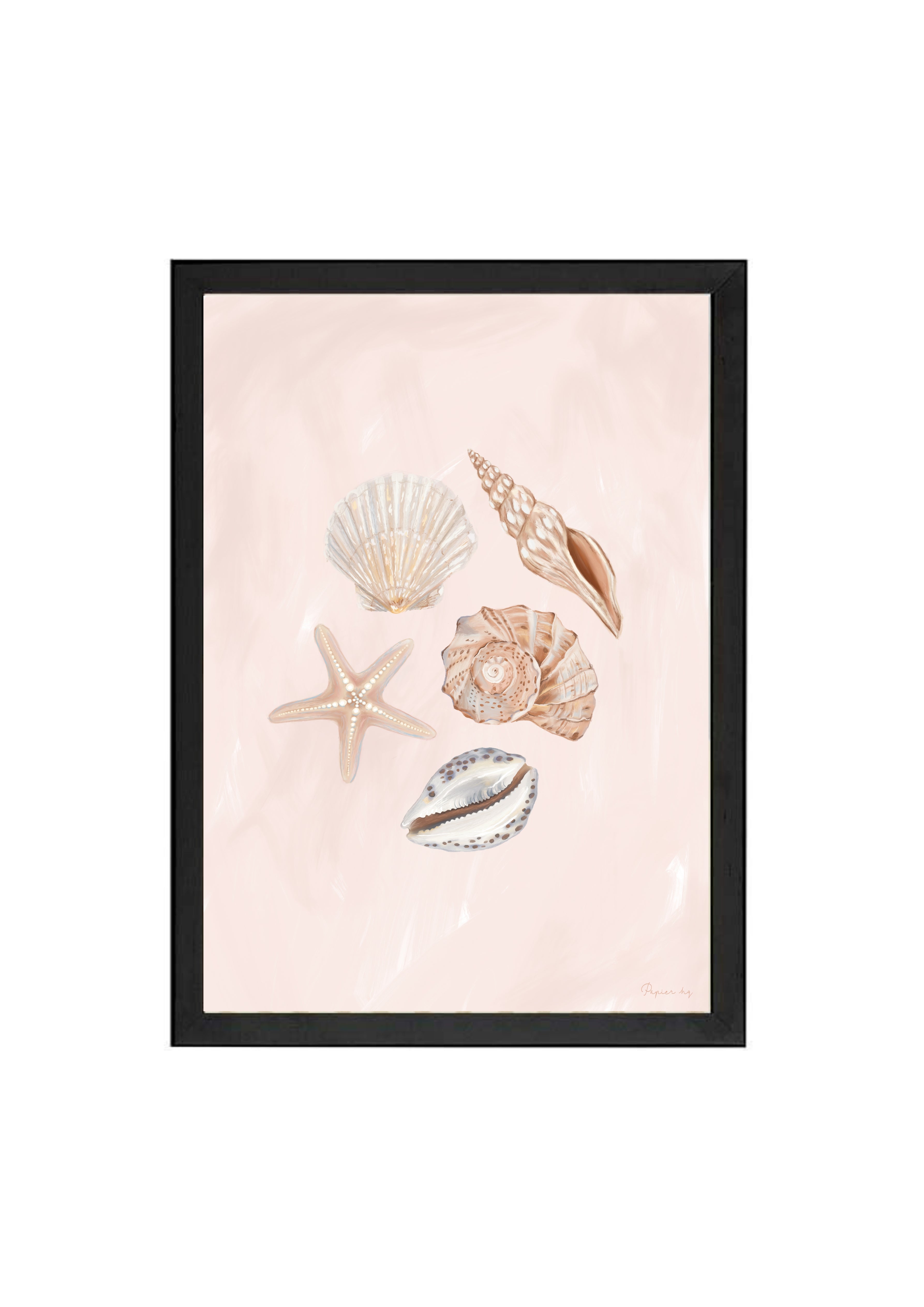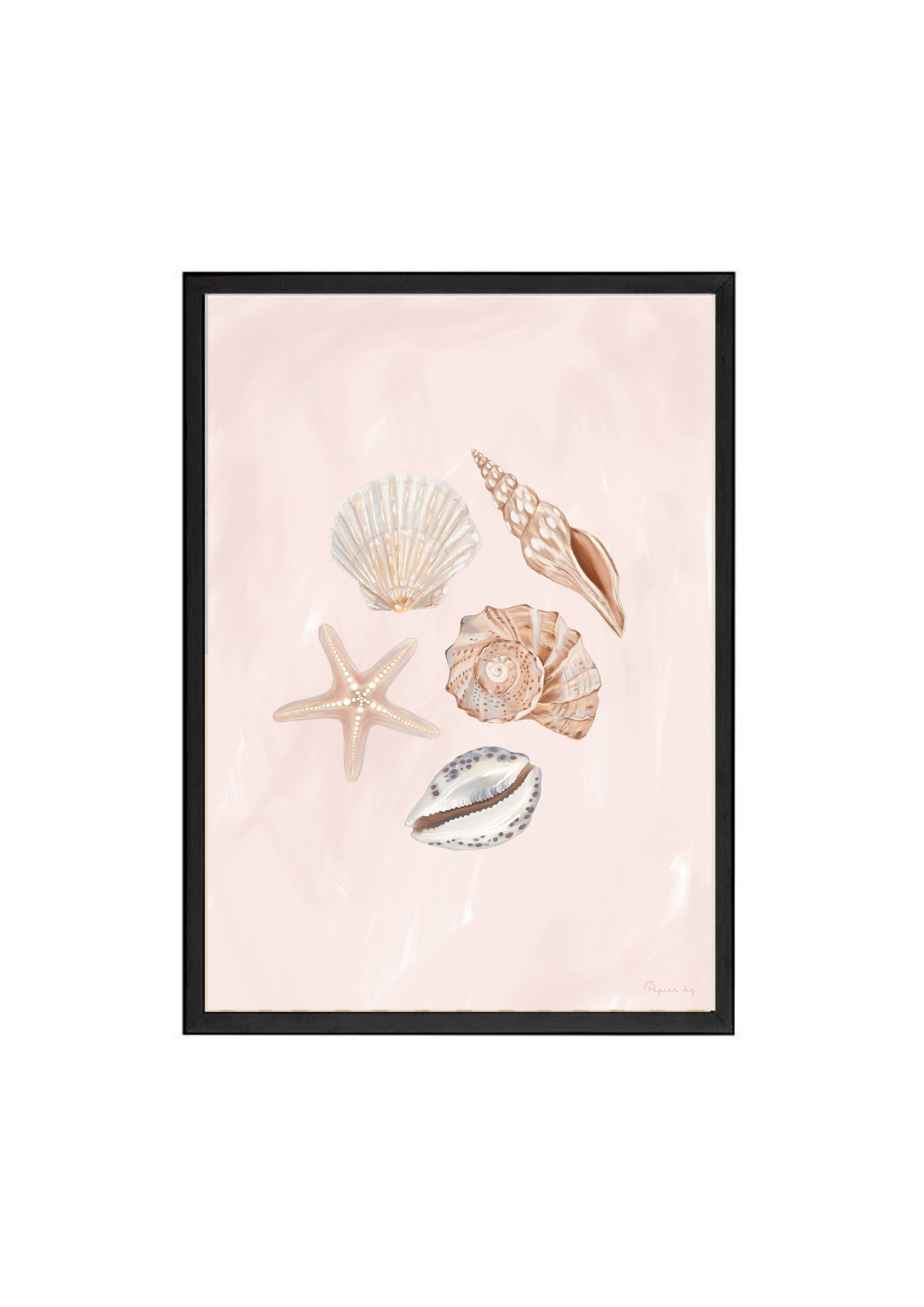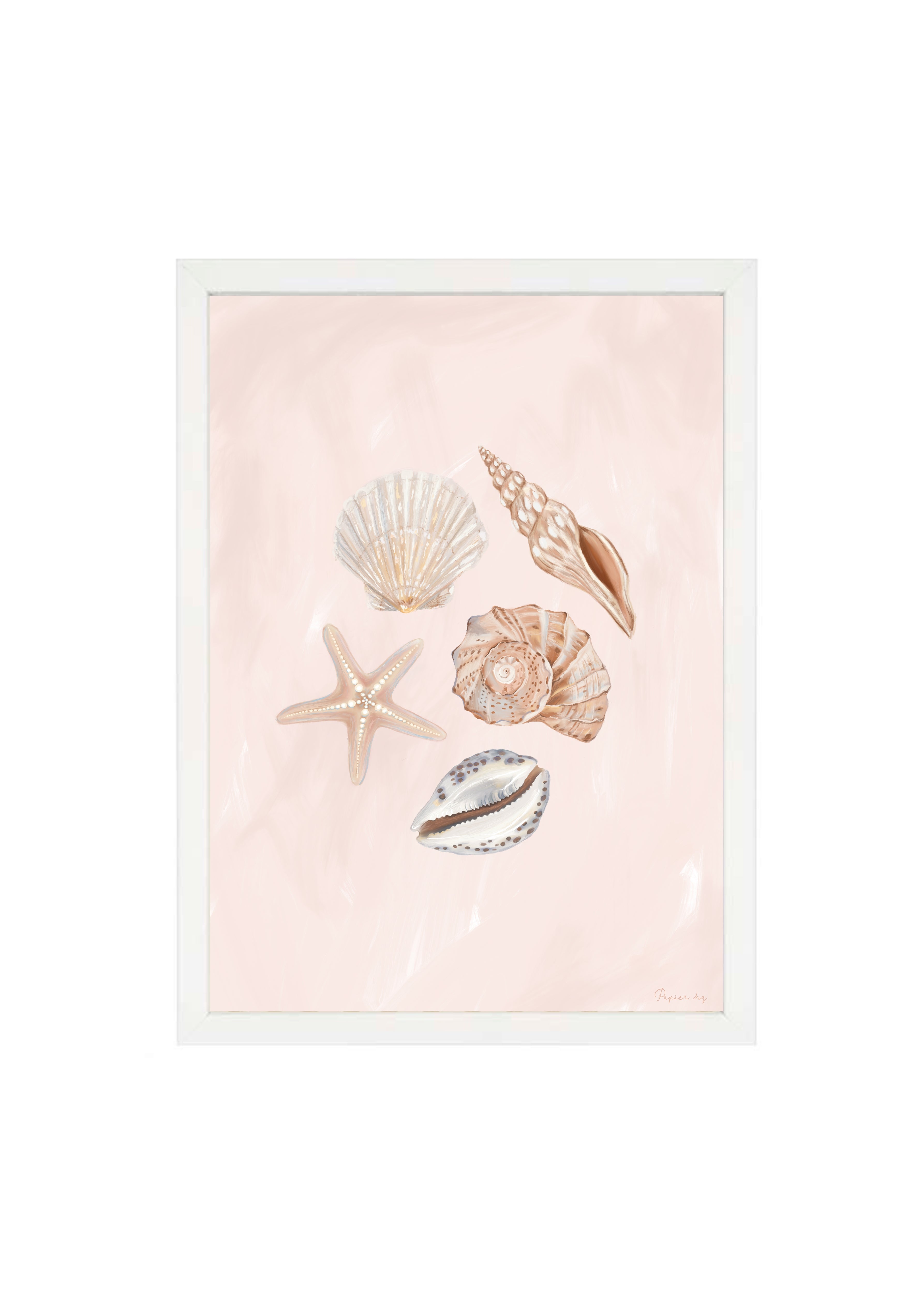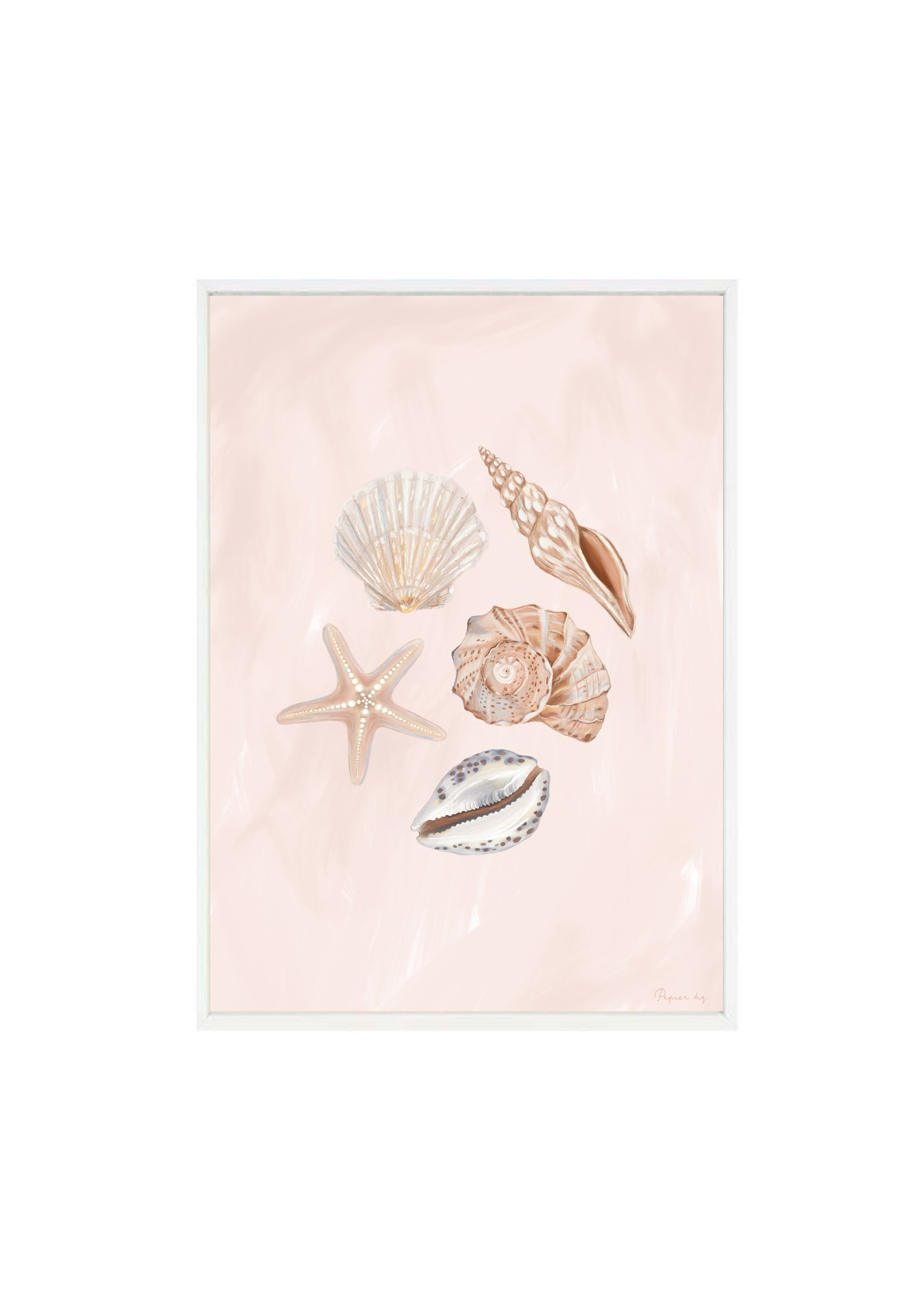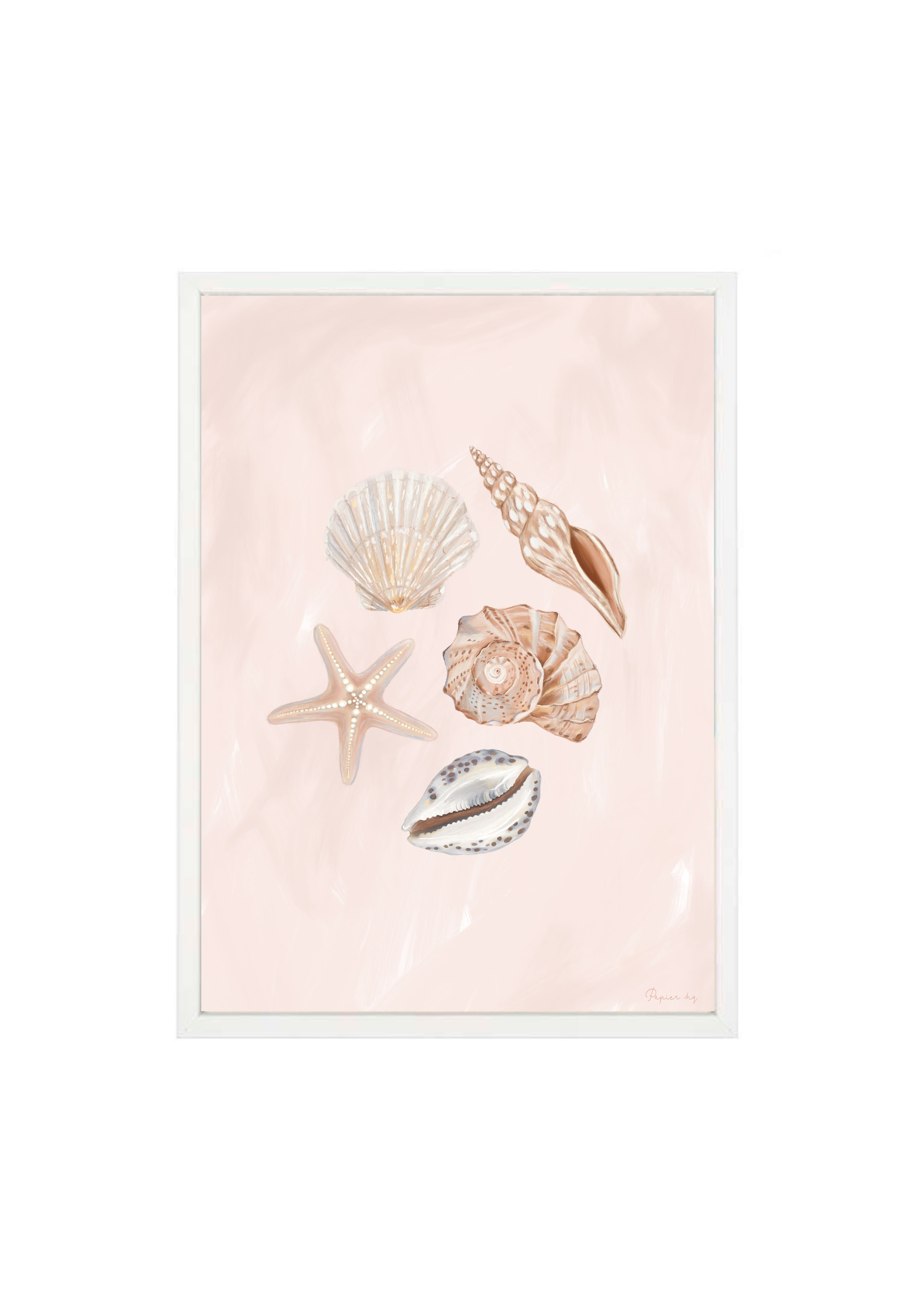 She Sells Sea Shells is a hand-painted coastal artwork featuring a delicate arrangement of seashells in soft blush and sandy tones. With gentle brushwork and refined detailing, this print brings a calm, airy feel to nurseries, bedrooms, or relaxed living spaces. Designed to feel timeless and effortless, it adds a subtle coastal touch while keeping your space light and considered.