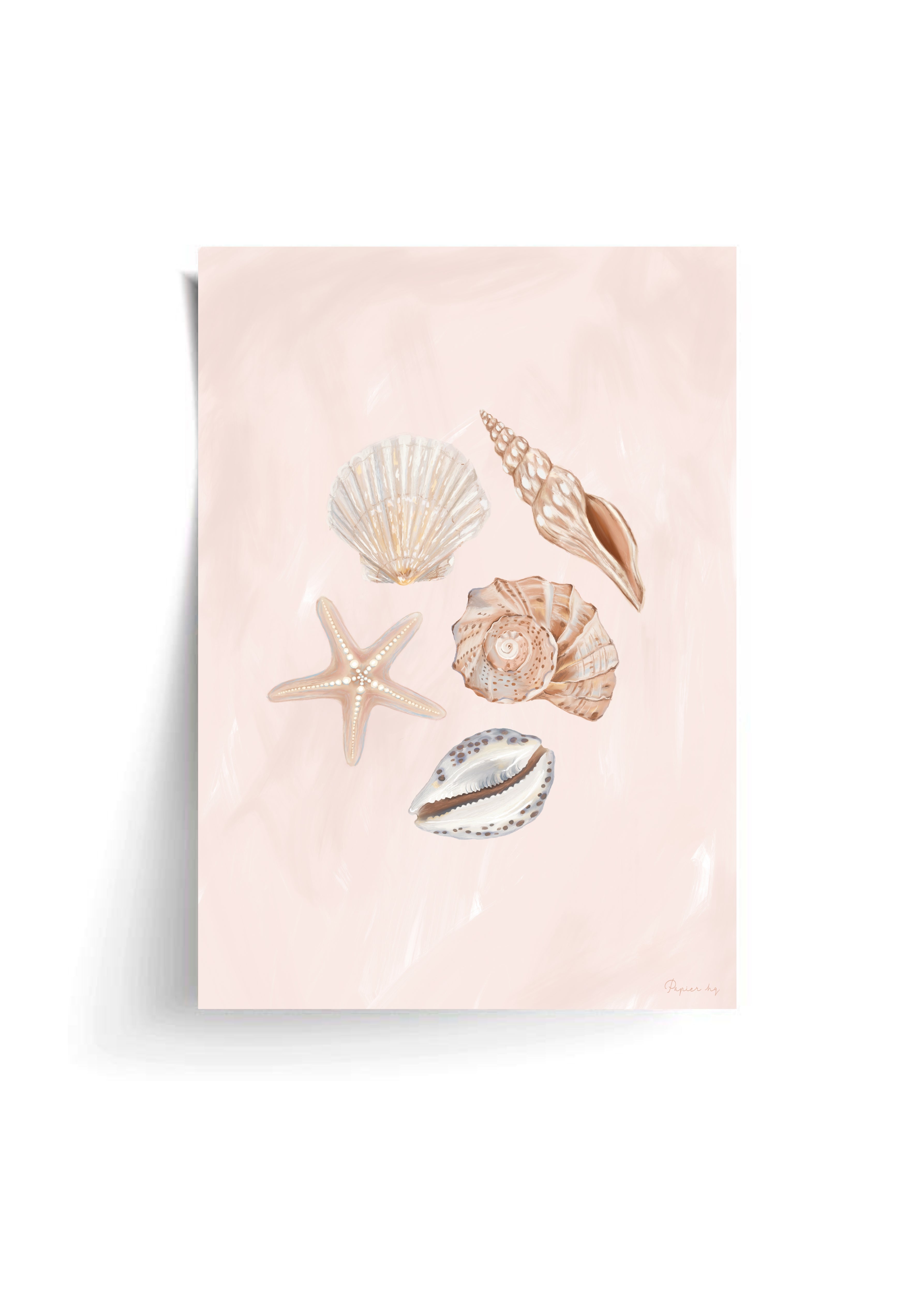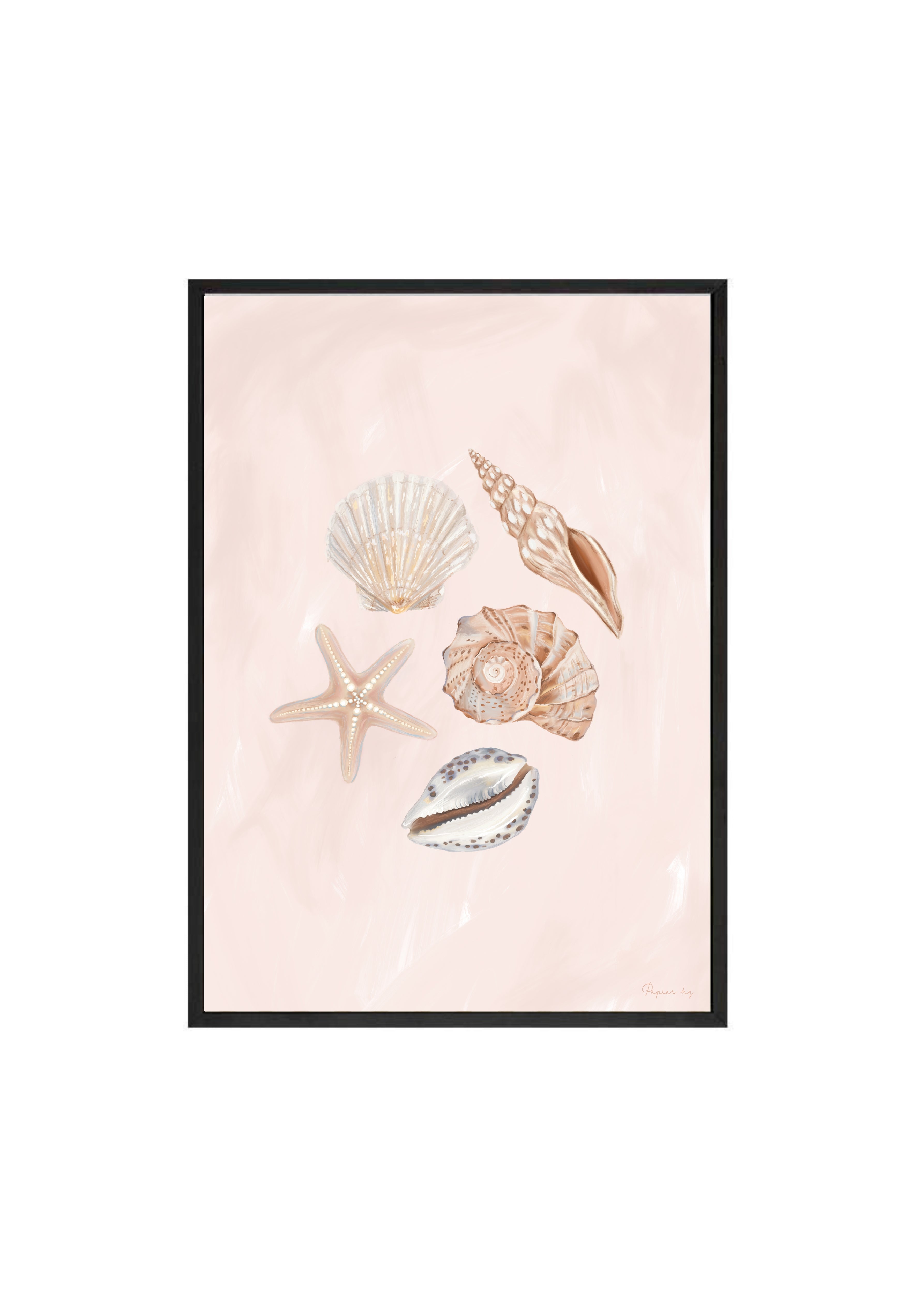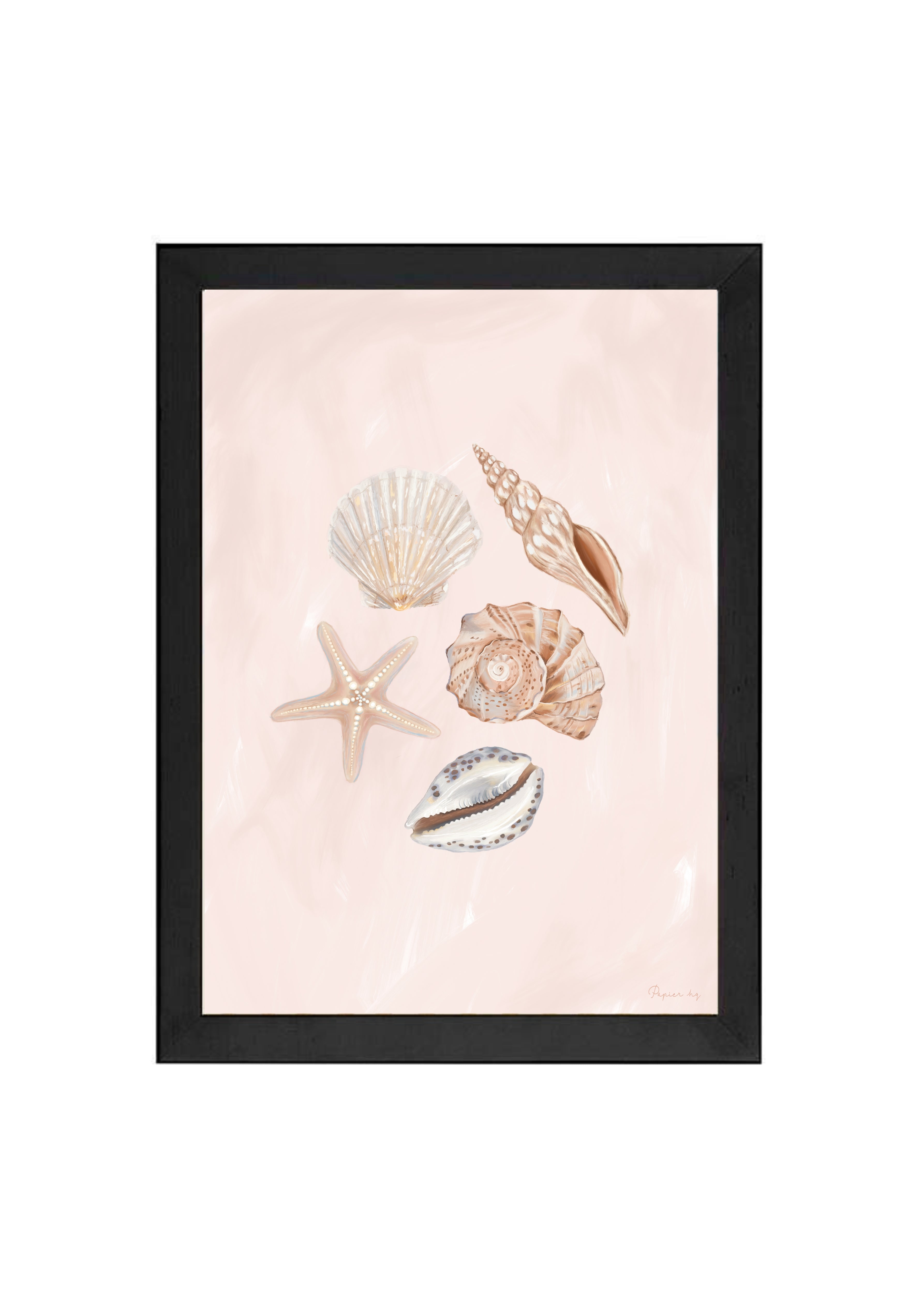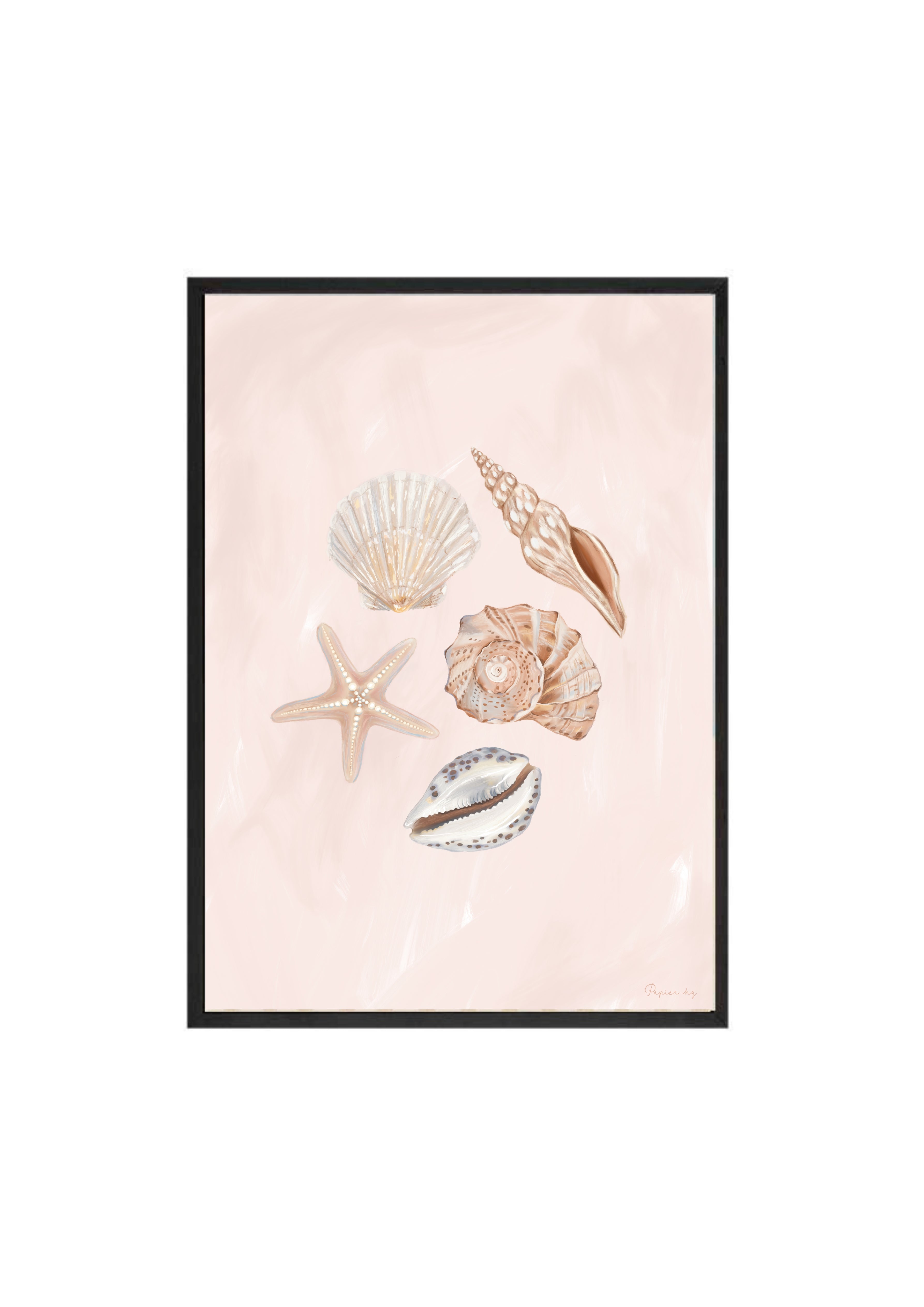 She Sells Sea Shells is a hand-painted coastal artwork featuring a delicate arrangement of seashells in soft blush and sandy tones. With gentle brushwork and refined detailing, this print brings a calm, airy feel to nurseries, bedrooms, or relaxed living spaces. Designed to feel timeless and effortless, it adds a subtle coastal touch while keeping your space light and considered.